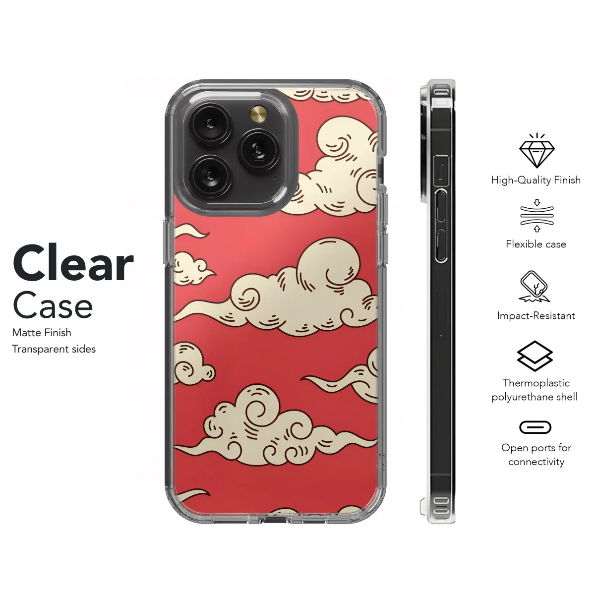 Adorn your essential digital companion with a captivating design inspired by ancient Asian artistry. This exquisite pattern features beautifully rendered traditional clouds in a soft cream tone, set against a rich, vibrant red background. Each cloud swirls and curls in the classic style seen in historical Chinese and Japanese art, symbolizing good fortune, spiritual ascension, and the journey of the soul. The intricate linework within each cloud adds a touch of elegant detail, creating a visually striking and deeply meaningful motif. Perfect for those who appreciate unique cultural aesthetics and seek to express their personal style through their everyday items, this graphic application brings a piece of timeless oriental elegance to your grasp. The seamless nature of the pattern ensures a continuous, flowing visual that wraps your handheld tech in sophisticated charm. Elevate your device's look with this auspicious cloud design, transforming it into a vibrant piece of art and a conversation starter. It makes a thoughtful and stylish gift for anyone who loves traditional Asian culture, mythical imagery, or simply stands out with unique accessories. Experience the blend of protection and profound beauty with this stunning red and cream cloud pattern, a true testament to enduring artistic traditions. This distinctive art piece provides not just visual appeal but also a sense of connection to ancient symbolism and cultural heritage. It's a vibrant statement accessory reflecting a passion for unique and meaningful designs, ready to personalize your digital life.