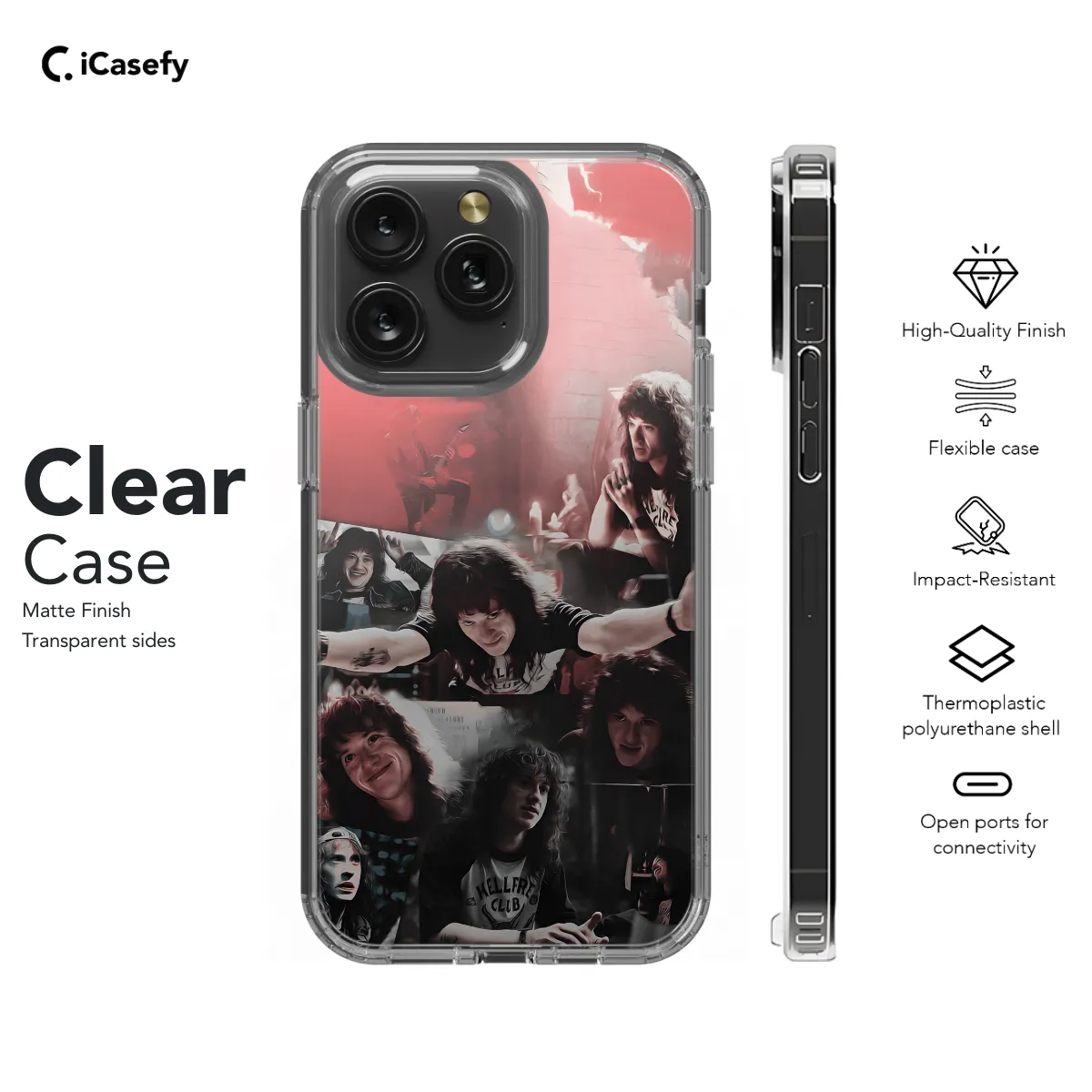 Capture the enigmatic allure of Eddie Munson from Stranger Things with this captivating phone case. Featuring imagery inspired by Eddie's adventures in Hawkins, this case transports you to the nostalgic 1980s world of the hit Netflix series. Carry a piece of Hawkins with you wherever you go and let your device become a portal to the thrilling mysteries of Stranger Things with this stylish accessory.