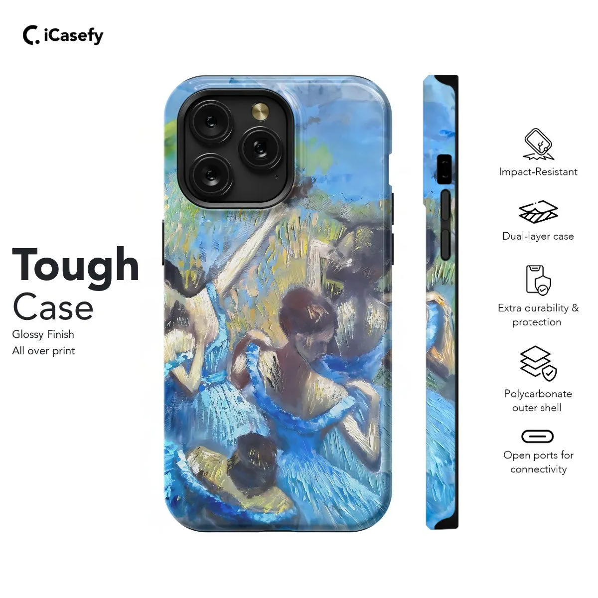 Introducing our Edgar Degas Blue Dancers phone case, inspired by the iconic artwork of the renowned French artist. Featuring graceful dancers in hues of blue, this case captures the elegance and beauty of Degas' masterpiece. Carry a piece of art history with you while protecting your device in style.