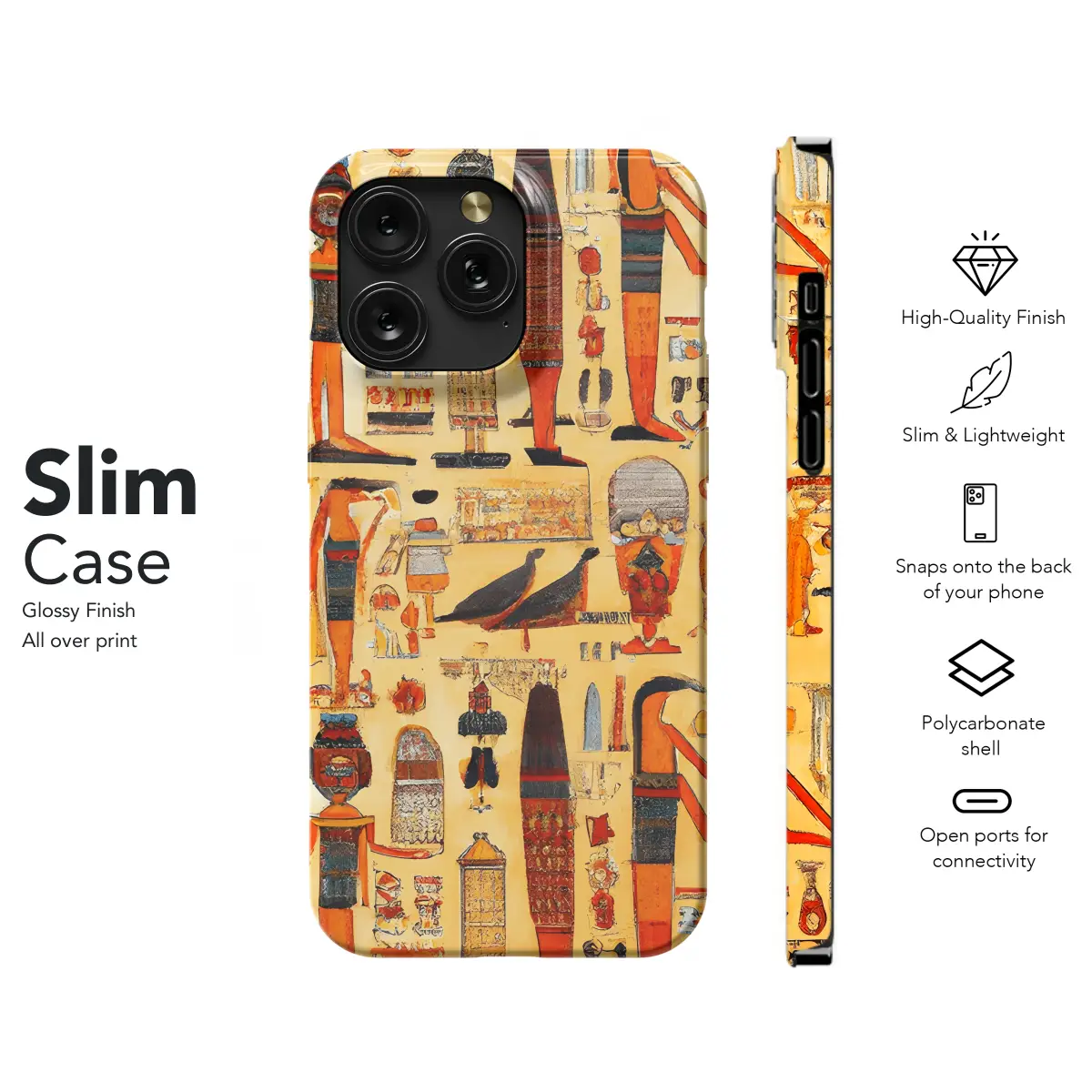 Uncover the enigmatic mysteries of ancient Egypt with this exquisite phone case featuring the iconic Horus Eye hieroglyph. This protective cover safeguards your device while immersing you in the allure of an ancient civilization. The intricate design transports you to a time of pharaohs and pyramids, adding a touch of mystical charm to your everyday life.