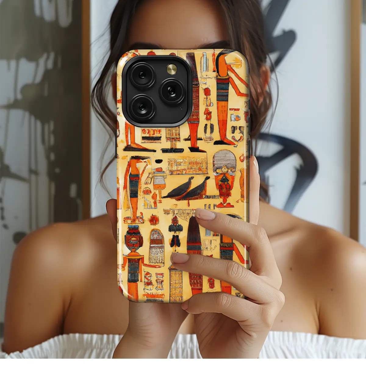 Uncover the enigmatic mysteries of ancient Egypt with this exquisite phone case featuring the iconic Horus Eye hieroglyph. This protective cover safeguards your device while immersing you in the allure of an ancient civilization. The intricate design transports you to a time of pharaohs and pyramids, adding a touch of mystical charm to your everyday life.