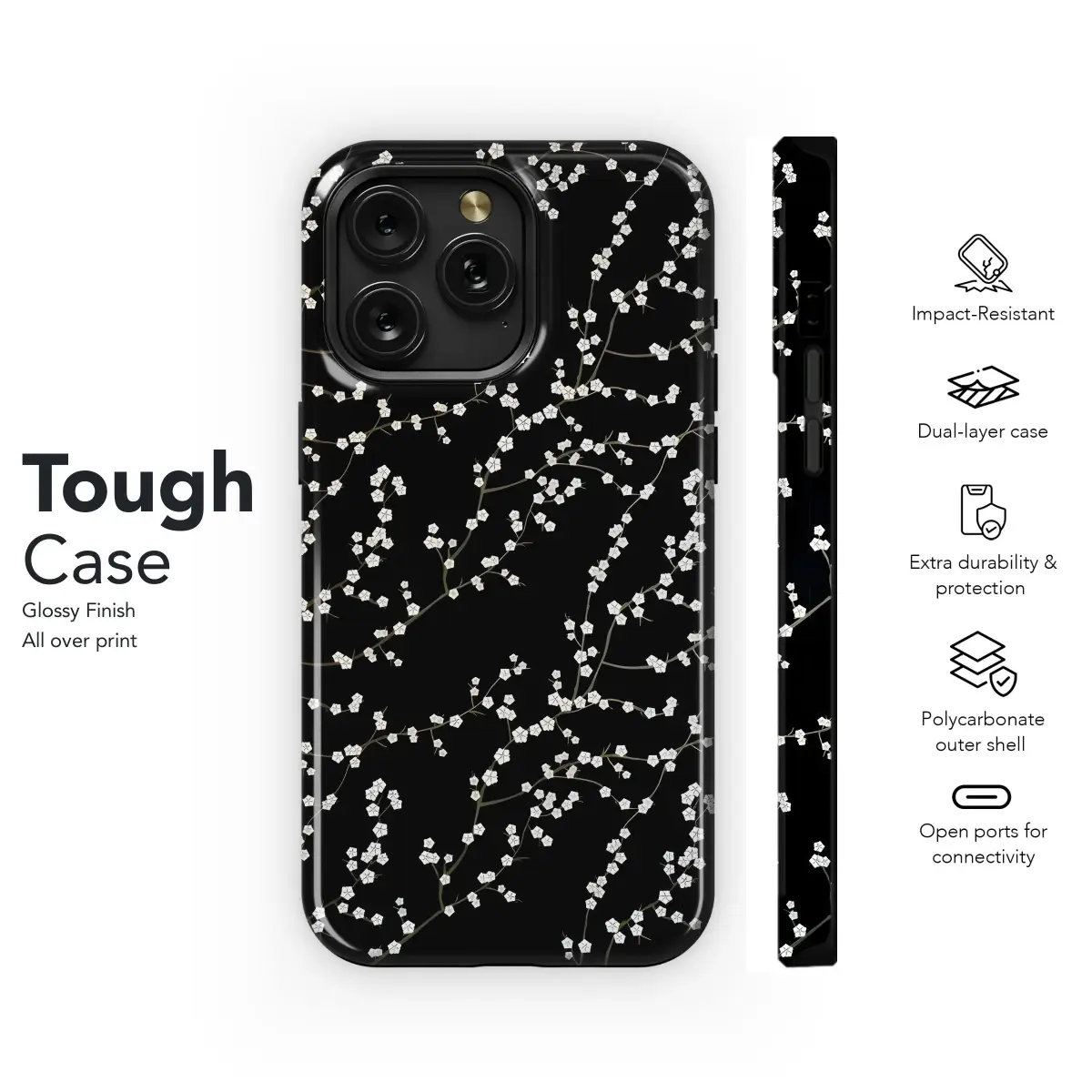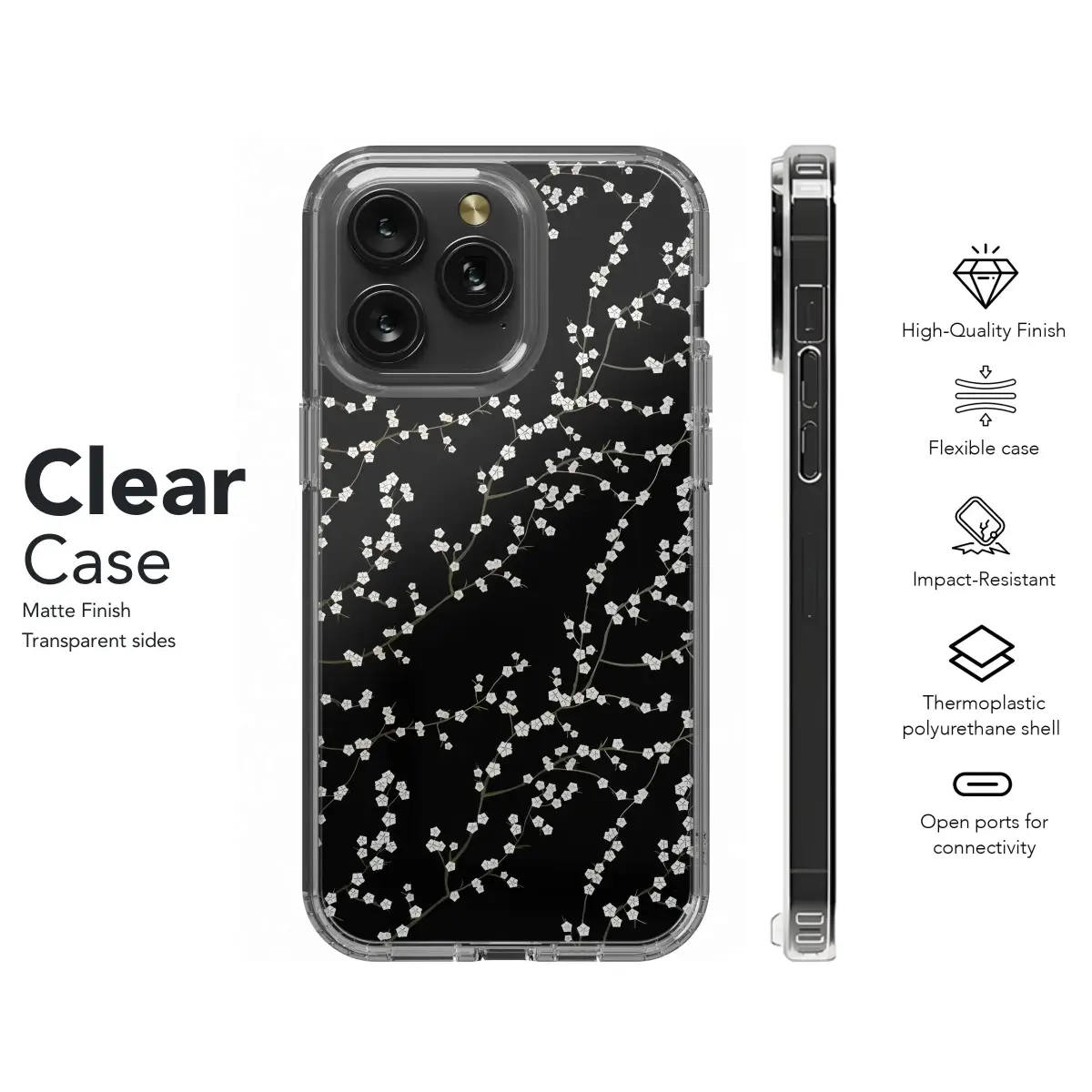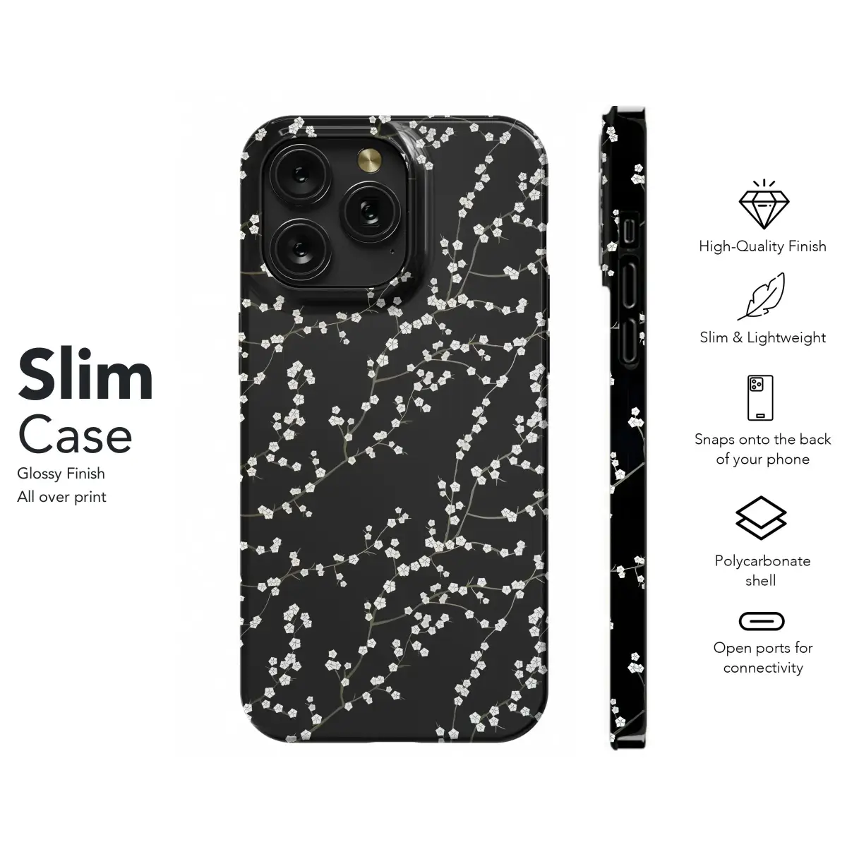 Imagine carrying a piece of serene beauty with you daily. This design showcases a stunning pattern of delicate white blossoms gracing elegant, dark branches, set against a deep, rich black background. Inspired by the timeless charm of oriental florals, like cherry or plum blossoms, this print brings a touch of tranquil nature and sophisticated elegance to your personal items. The stark contrast between the vibrant white flowers and the dark canvas creates a visually striking and minimalist aesthetic that is both modern and classic. Perfect for adding a unique artistic flair to your essential accessories, this botanical pattern is ideal for those who appreciate subtle beauty and nature-inspired designs. Whether you're drawn to Japanese art influences, spring aesthetics, or simply the elegant simplicity of floral motifs on a dark backdrop, this pattern offers a stylish way to express your personal taste. It's a perfect custom piece or a thoughtful gift for anyone who loves aesthetic and elegant accessories, providing durable and vibrant surface art for their handheld digital gear or other personal devices. This print is designed to add both visual appeal and a touch of refined artistry to your daily carry, making your frequently used items a reflection of your appreciation for beautiful design and the natural world, transforming the ordinary into something truly special.