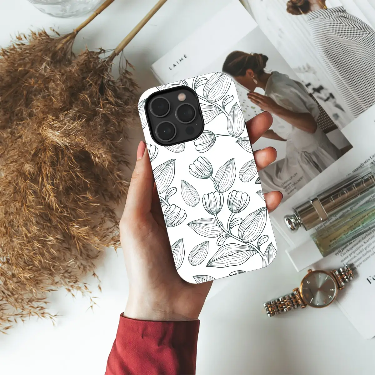 Discover a piece of nature's delicate artistry captured in this exquisite seamless pattern. Featuring a charming arrangement of hand-drawn botanical elements, this design showcases elegant line art flowers and gracefully flowing leaves, rendered in a soothing, deep green hue against a crisp white backdrop. The minimalist style highlights the intricate details and organic forms, creating a timeless and sophisticated aesthetic that appeals to lovers of natural beauty and contemporary design alike. This versatile floral print evokes a sense of calm and natural elegance, perfect for bringing a touch of the outdoors into your daily routine. The repetitive, flowing motif ensures a harmonious visual flow across any surface it adorns, making it an ideal choice for decorating your most treasured personal items. Imagine this unique botanical illustration adding a touch of personalized elegance to your essential accessories. It's more than just a pattern; it's a statement of refined taste and a constant connection to the serene beauty of the natural world, serving as a small escape in your pocket. Whether you seek a unique accessory for yourself or a thoughtful gift for someone special who cherishes elegant design and nature's simple forms, this captivating nature-inspired design offers a beautiful way to express personal style and enhance an object with bespoke charm. Its understated elegance and intricate detail make it a perfect choice for those who appreciate art, nature, and products that feel uniquely their own. Elevate your everyday essentials with this delightful, handcrafted botanical print, a truly special design.