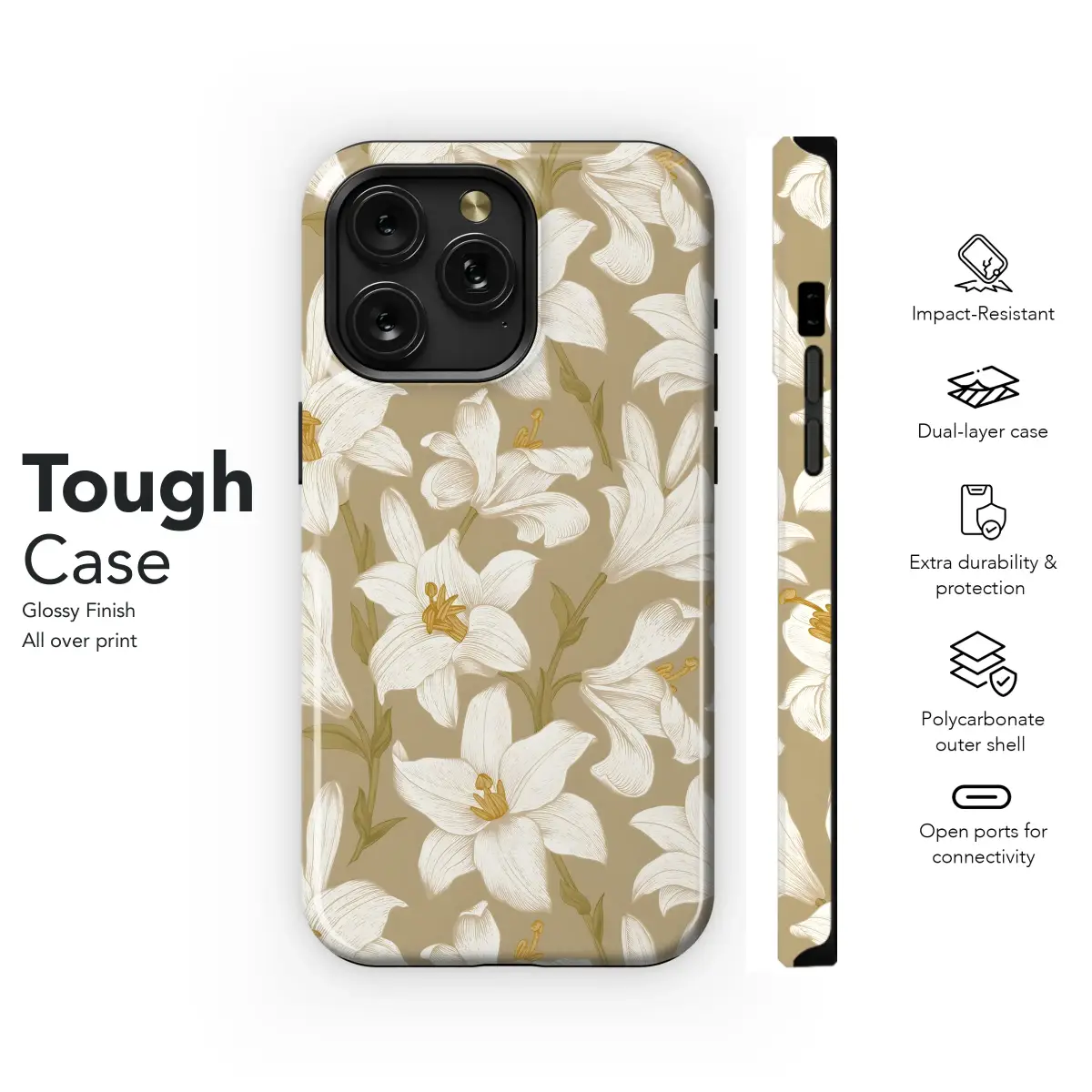 Adorn your device with this elegant floral design, featuring intricately detailed lilies in a timeless beige and white palette. The meticulously crafted botanical illustration evokes a sense of classic grace, making it the perfect accessory for the discerning individual. This sophisticated pattern adds a touch of understated luxury to your daily life, transforming your device into a stylish statement piece. The high-resolution print ensures vibrant colors and sharp details that will last. This beautiful design is a perfect gift for yourself or someone special, offering a blend of artistry and practicality. The protective qualities of the case safeguard against scratches and minor impacts, while the slim profile maintains a sleek aesthetic. This subtle yet striking design complements various styles, adding a touch of refined elegance to your personal technology. Express your unique style with this exquisite floral artwork. Choose your perfect fit and enjoy the beauty. This captivating design will elevate your everyday routine with its quiet charm and sophisticated appeal. Embrace effortless elegance with this stunning floral print.