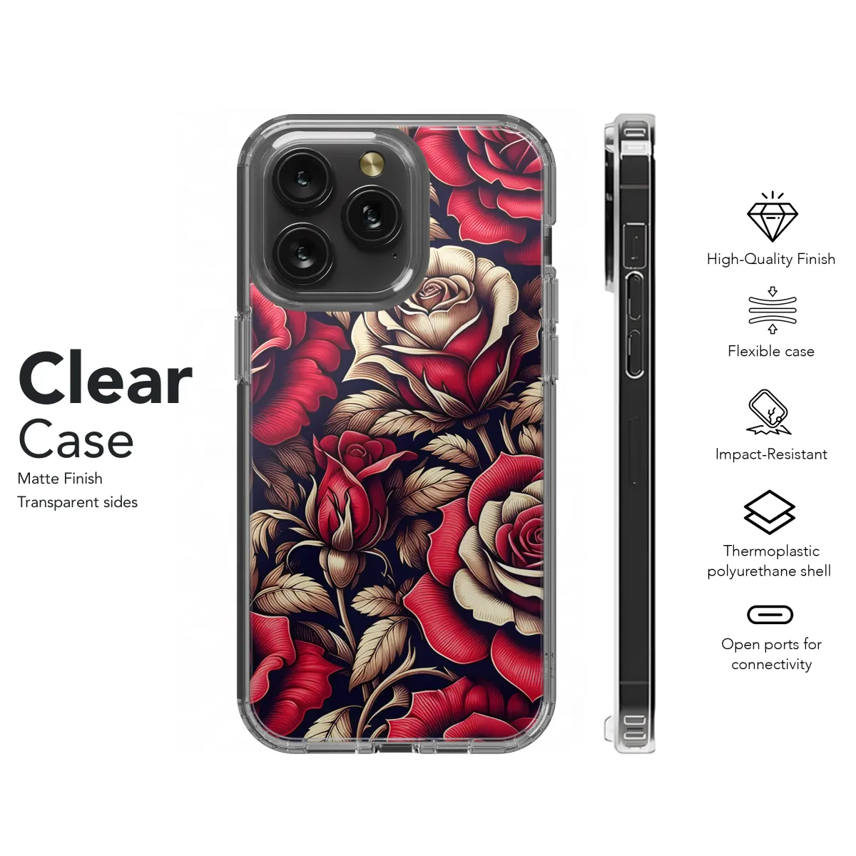Indulge in the allure of this exquisite phone case that combines sophistication and charm. The striking deep red base echoes the timeless elegance of a velvety rose, while the intricate floral details add a touch of whimsy to your device. Protect your phone with unparalleled style and embrace the captivating beauty of nature with this captivating case. It's the perfect accessory to elevate your everyday moments and make a statement wherever you go.