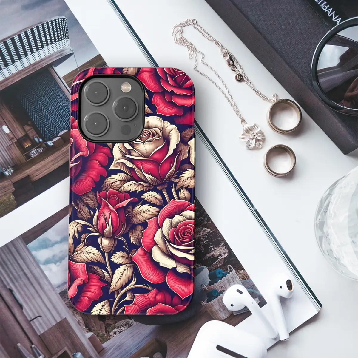 Indulge in the allure of this exquisite phone case that combines sophistication and charm. The striking deep red base echoes the timeless elegance of a velvety rose, while the intricate floral details add a touch of whimsy to your device. Protect your phone with unparalleled style and embrace the captivating beauty of nature with this captivating case. It's the perfect accessory to elevate your everyday moments and make a statement wherever you go.