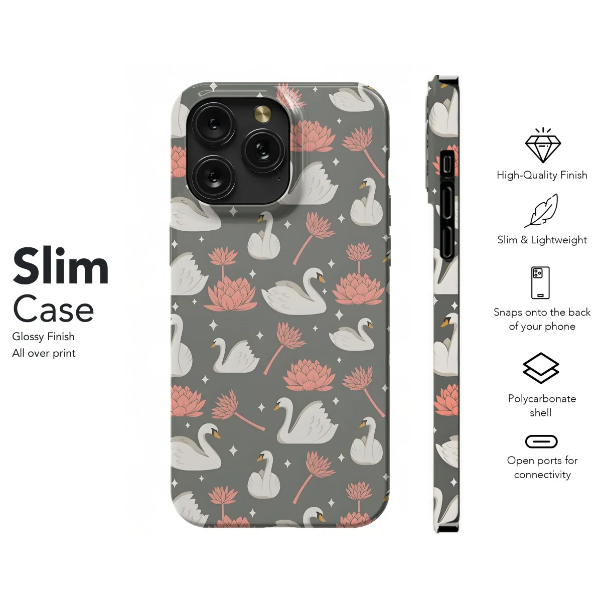 Immerse yourself in tranquility with this enchanting aquatic ballet design, perfect for adding a touch of unique charm to your most essential personal item. This exquisite, seamless pattern showcases graceful white swans gliding amongst vibrant pink lotus flowers, all set against a deep, calming grey backdrop accented with delicate sparkling stars. Each detail is rendered with artistic care, creating a sense of peaceful elegance and natural beauty that transforms the ordinary into something truly special. It's an ideal way to express your personal aesthetic, offering a dreamy, nature-inspired look that is both sophisticated and serene. Let this captivating print reflect your individuality, making your everyday carry a canvas for graceful art. Whether seeking a distinctive accessory for yourself or searching for a thoughtful gift for someone who appreciates elegant design and artistic flair, this unique illustration is sure to delight. The delicate balance of wildlife and floral elements captures a sense of calm and wonder, making it a statement piece that is both beautiful and meaningful. Elevate your style with this charming pattern, designed to bring joy and aesthetic appeal to your cherished belongings. This enchanting scene of swans and lotuses is more than just a design; it's a little piece of peaceful paradise you can carry with you, adding a splash of serene beauty to your day. Discover the perfect blend of nature, elegance, and personalization with this captivating artistic pattern.