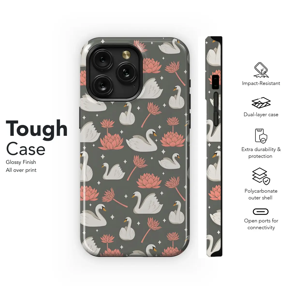 Immerse yourself in tranquility with this enchanting aquatic ballet design, perfect for adding a touch of unique charm to your most essential personal item. This exquisite, seamless pattern showcases graceful white swans gliding amongst vibrant pink lotus flowers, all set against a deep, calming grey backdrop accented with delicate sparkling stars. Each detail is rendered with artistic care, creating a sense of peaceful elegance and natural beauty that transforms the ordinary into something truly special. It's an ideal way to express your personal aesthetic, offering a dreamy, nature-inspired look that is both sophisticated and serene. Let this captivating print reflect your individuality, making your everyday carry a canvas for graceful art. Whether seeking a distinctive accessory for yourself or searching for a thoughtful gift for someone who appreciates elegant design and artistic flair, this unique illustration is sure to delight. The delicate balance of wildlife and floral elements captures a sense of calm and wonder, making it a statement piece that is both beautiful and meaningful. Elevate your style with this charming pattern, designed to bring joy and aesthetic appeal to your cherished belongings. This enchanting scene of swans and lotuses is more than just a design; it's a little piece of peaceful paradise you can carry with you, adding a splash of serene beauty to your day. Discover the perfect blend of nature, elegance, and personalization with this captivating artistic pattern.
