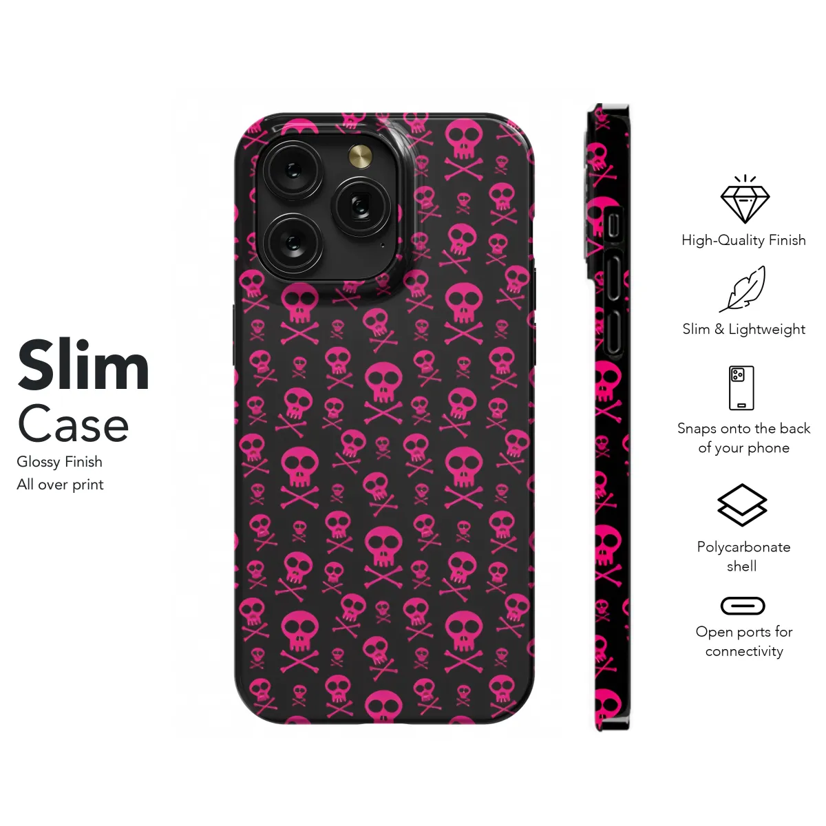 Adorn your phone with this edgy and alluring Emo Pink Skull Phone Case. Featuring a captivating pink skull design, this case exudes a blend of darkness and femininity. Its vibrant hues and intricate details will make your phone a statement piece. Crafted from durable materials, it offers reliable protection from bumps and scratches. Embrace your inner emo and let this case speak volumes about your unique style.