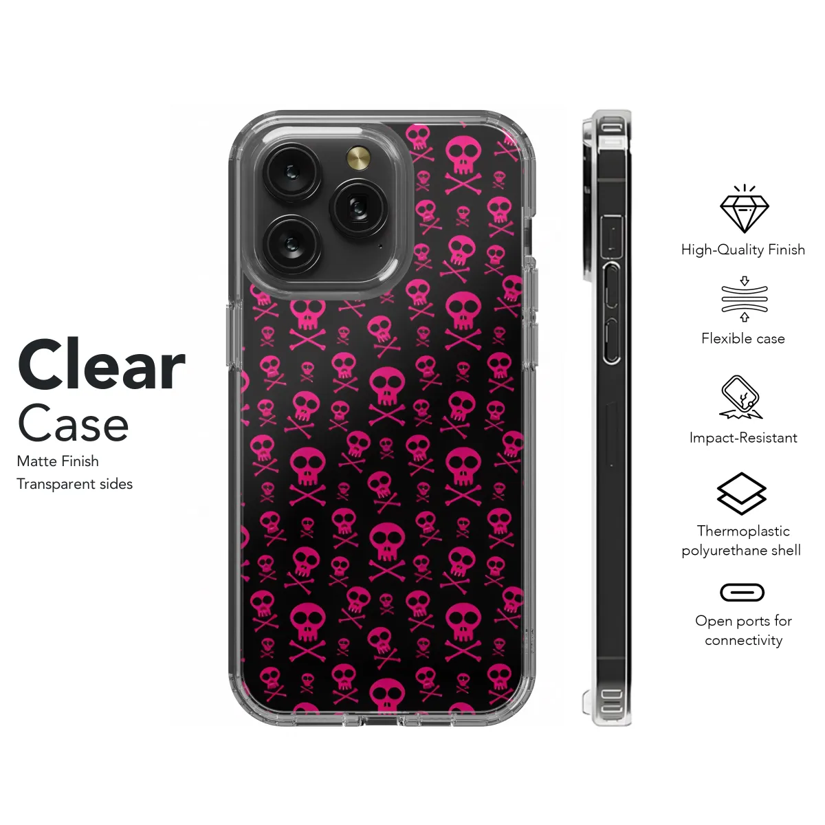 Adorn your phone with this edgy and alluring Emo Pink Skull Phone Case. Featuring a captivating pink skull design, this case exudes a blend of darkness and femininity. Its vibrant hues and intricate details will make your phone a statement piece. Crafted from durable materials, it offers reliable protection from bumps and scratches. Embrace your inner emo and let this case speak volumes about your unique style.