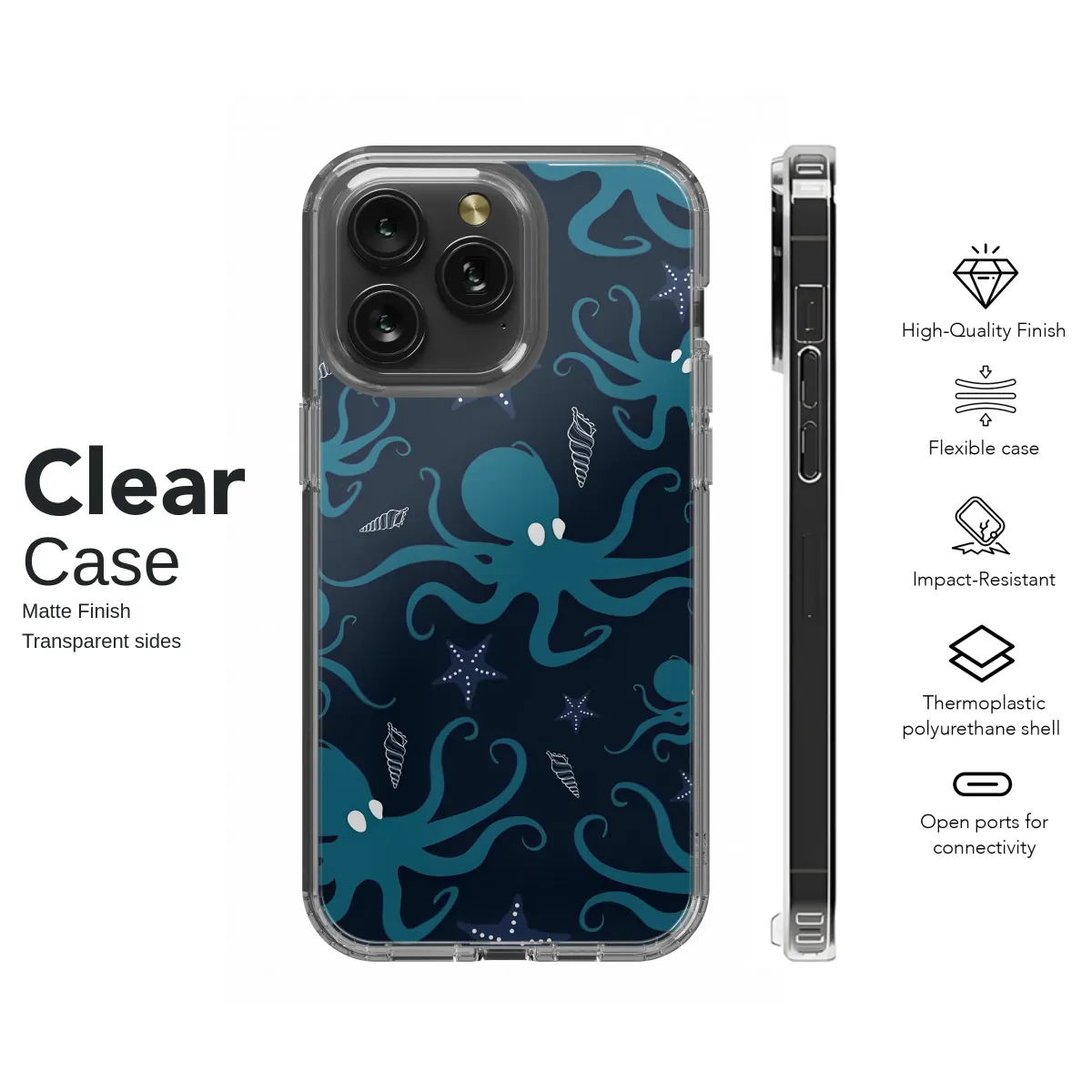 Dive into the enchanting abyss and let the profound mysteries of the deep sea wrap around your daily essentials. This captivating design captures a silent, graceful ballet unfolding in the midnight depths of the ocean, a world away from our own. Elegant teal octopuses, with their mesmerizingly fluid and curling tentacles, drift through a vast canvas of deep navy blue, their silhouettes glowing with a soft, inner light as if bioluminescent. They navigate a celestial seascape dotted with delicate starfish and finely detailed, spiraling seashell treasures, each element contributing to the hypnotic rhythm of this underwater world. This is more than just a pattern; it’s a tangible piece of the ocean's soul, an invitation to carry the serene and powerful magic of marine life with you on all your adventures. It's the perfect artistic touch for the dreamer, the dedicated ocean lover, or anyone who finds profound solace in a sophisticated coastal vibe. This unique artwork transforms your most-used accessory into a statement piece of wearable oceanic art. Let the tranquil energy and timeless nautical charm of this beautiful illustration be a constant reminder of the vast, unexplored wonders hidden beneath the waves, adding a touch of whimsical yet elegant style to your everyday life.