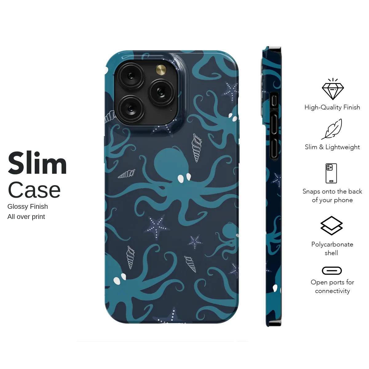 Dive into the enchanting abyss and let the profound mysteries of the deep sea wrap around your daily essentials. This captivating design captures a silent, graceful ballet unfolding in the midnight depths of the ocean, a world away from our own. Elegant teal octopuses, with their mesmerizingly fluid and curling tentacles, drift through a vast canvas of deep navy blue, their silhouettes glowing with a soft, inner light as if bioluminescent. They navigate a celestial seascape dotted with delicate starfish and finely detailed, spiraling seashell treasures, each element contributing to the hypnotic rhythm of this underwater world. This is more than just a pattern; it’s a tangible piece of the ocean's soul, an invitation to carry the serene and powerful magic of marine life with you on all your adventures. It's the perfect artistic touch for the dreamer, the dedicated ocean lover, or anyone who finds profound solace in a sophisticated coastal vibe. This unique artwork transforms your most-used accessory into a statement piece of wearable oceanic art. Let the tranquil energy and timeless nautical charm of this beautiful illustration be a constant reminder of the vast, unexplored wonders hidden beneath the waves, adding a touch of whimsical yet elegant style to your everyday life.