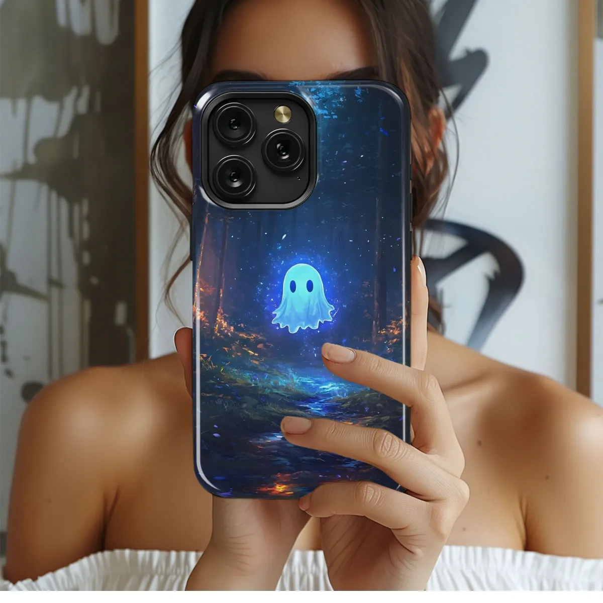 Envelop your device in the enchanting glow of this mystical design. A serene, ethereal ghost floats amidst a captivating night forest, its luminescent form casting a spellbinding aura. The artwork beautifully captures the magical ambiance of a moonlit woodland stream, with the soft glow of the ghost adding a touch of whimsical mystery. This vibrant, high-resolution image is perfect for those seeking a unique and captivating aesthetic. Transform your everyday tech into a piece of wearable art that reflects your love for fantasy and the otherworldly. The detailed digital painting showcases a mesmerizing blend of blues, purples, and oranges, creating a truly captivating visual experience. This design brings a sense of wonder and tranquility, ideal for those who appreciate imaginative and artistic expression. Its stunning detail and vibrant colors will surely turn heads and spark conversation. Add a touch of magic to your life with this one-of-a-kind, high-quality print, perfect for expressing your individuality. This captivating piece is guaranteed to stand out from the ordinary, adding a unique and whimsical touch to your personal style.