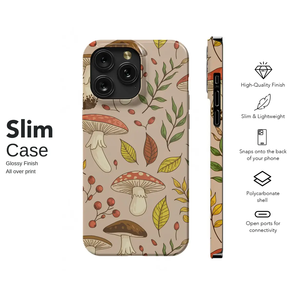 Embrace the cozy magic of autumn with this enchanting forest floor design, a perfect tribute to the serene beauty of the woodlands. This whimsical pattern captures a delightful medley of hand-drawn mushrooms, from the iconic red-and-white spotted toadstools to rich, earthy brown fungi, each rendered with charming detail. They are scattered amongst delicate branches of vibrant red berries and falling leaves that dance in shades of golden yellow, rustic orange, and deep forest green. Set against a warm, neutral background, this composition evokes the feeling of a crisp afternoon walk through a sun-dappled forest. This beautiful botanical illustration is a dream for any nature lover, capturing the very heart of the cottagecore aesthetic with its rustic charm and gentle, nostalgic vibe. It’s more than just a pattern; it’s a tiny, wearable piece of an enchanted world, a celebration of foraging and the quiet wonders found in nature. Let this beautiful artwork wrap your favorite daily accessory in the warm, comforting embrace of the fall season, making it the perfect unique gift for a friend or a special treat for yourself to carry a touch of forest magic wherever you go.