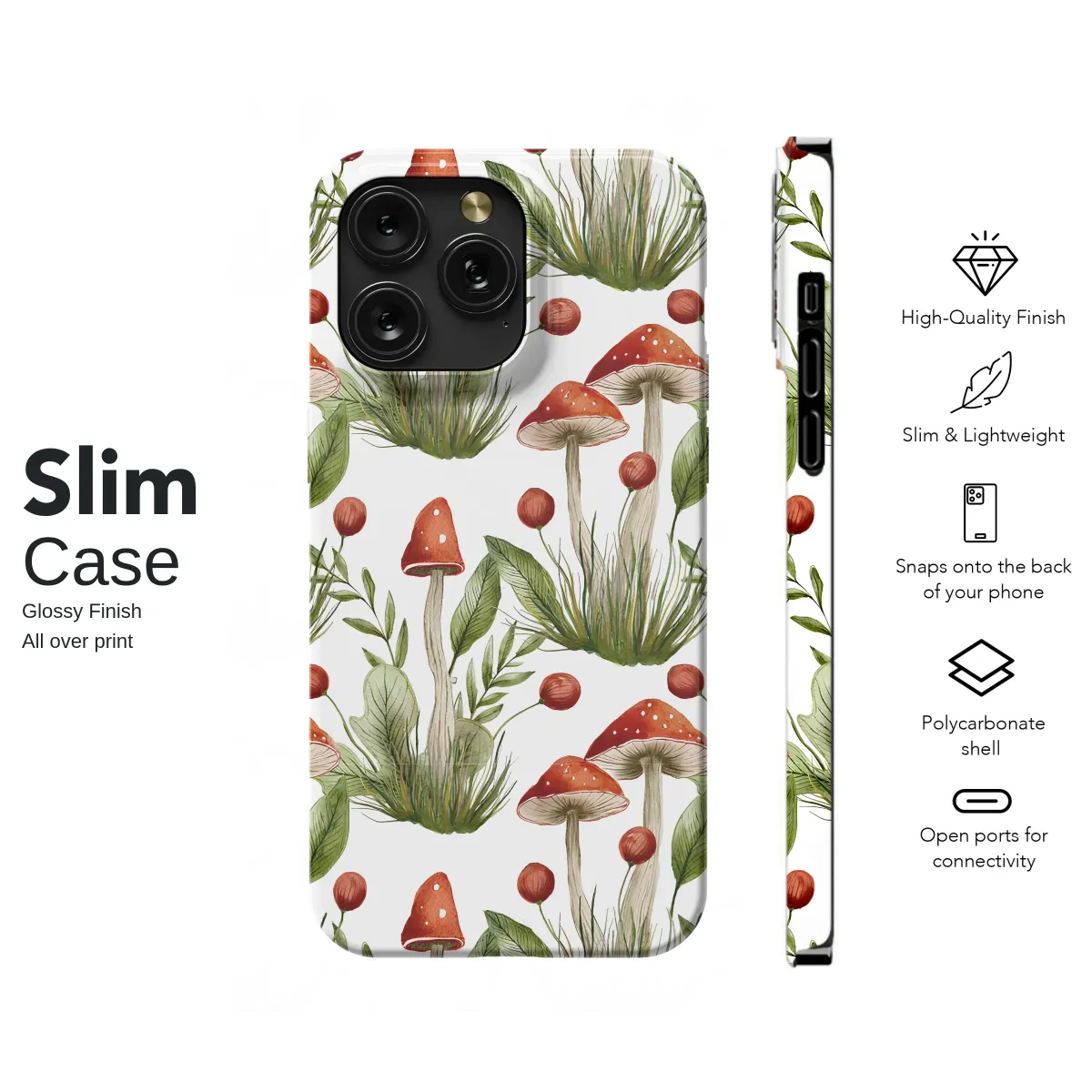 Step into an enchanted woodland clearing every time you glance at this captivating design. Imagine the soft, mossy ground underfoot as you discover a miniature world of wonder, beautifully rendered in a soft watercolor style. This seamless pattern features charming Amanita muscaria mushrooms, their iconic red caps dotted with whimsical white spots, standing tall amidst lush tufts of wild green grass and delicate foliage. Tiny, ruby-red berries on slender stems add a pop of vibrant color, completing this idyllic forest scene. The artwork evokes a sense of peace and fairytale magic, perfect for anyone who adores the cottagecore, goblincore, or forestcore aesthetics. It’s a tribute to the hidden beauty of nature, designed to bring a touch of the outdoors to your daily life. Let this botanical masterpiece wrap your most-used accessory in the gentle embrace of the woods, turning an everyday object into a personal piece of art. Carry this little slice of a magical forest with you, and let it be a constant source of calm, wonder, and whimsical charm wherever you go. It’s the perfect gift for the nature enthusiast, the dreamer, or anyone who believes in a little bit of magic.
