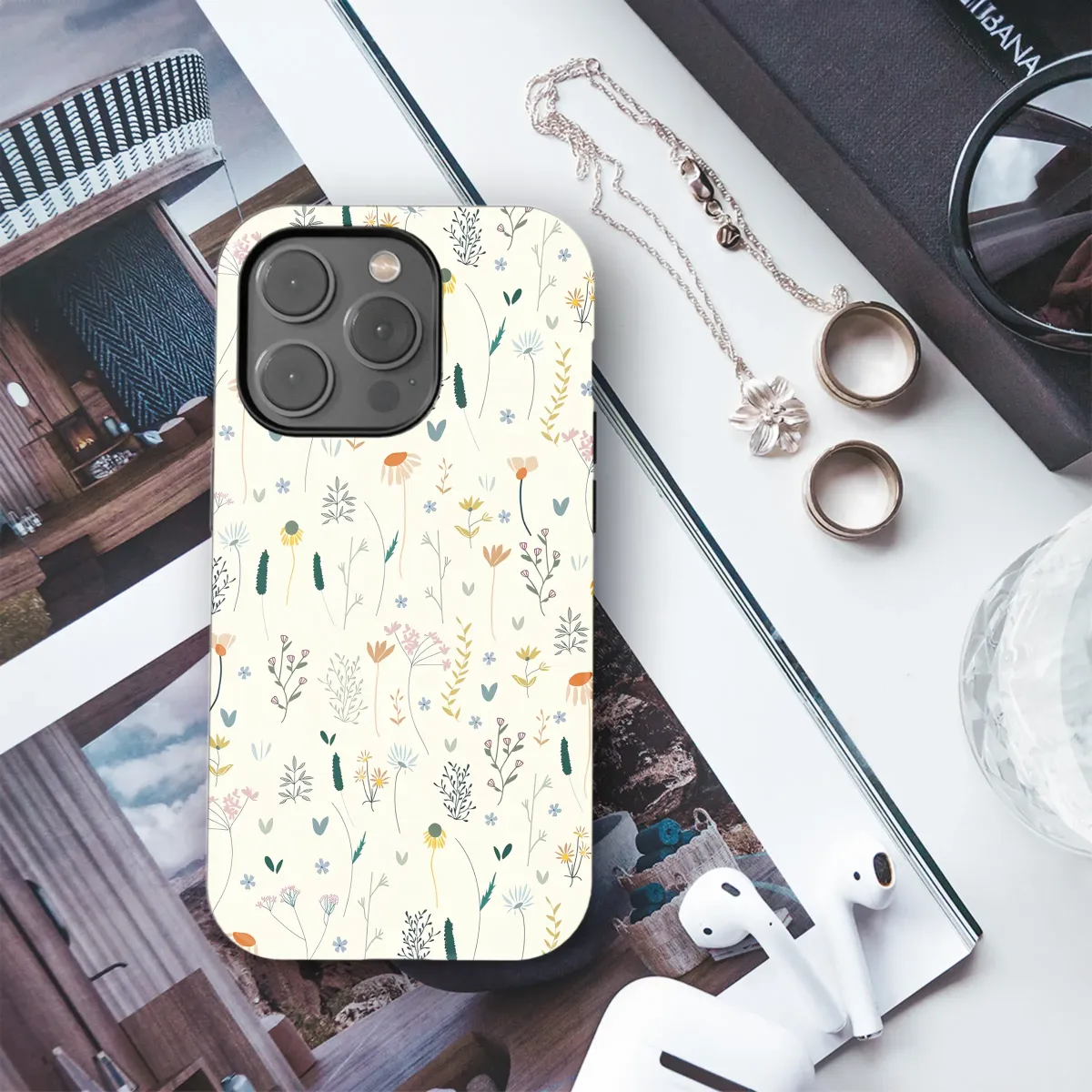 Step into a sun-drenched meadow every time you glance at this enchanting design. A delicate tapestry of hand-illustrated wildflowers dances across a warm, cream-colored canvas, whispering tales of lazy summer afternoons and gentle breezes. Each stem, leaf, and petal is rendered with a whimsical, folksy charm, from the cheerful orange-faced coneflowers to the clusters of soft pink blooms and tiny, sky-blue forget-me-nots. The muted, earthy color palette—featuring dusty rose, sage green, warm ochre, and deep teal—evokes a profound sense of calm and nostalgia, bringing a touch of the serene outdoors to your most-used accessory. This beautiful botanical artwork is a celebration of nature's simple, untamed beauty, making it the perfect gift for the dreamer, the gardener, or anyone who finds joy in the quiet magic of a blooming field. Let this design be your personal secret garden, a constant reminder to slow down and appreciate the delicate artistry of the wild. It’s more than just a pretty pattern; it’s a portable piece of peace, an essential for the soul that loves the cottagecore aesthetic and the timeless allure of elegant floral art.