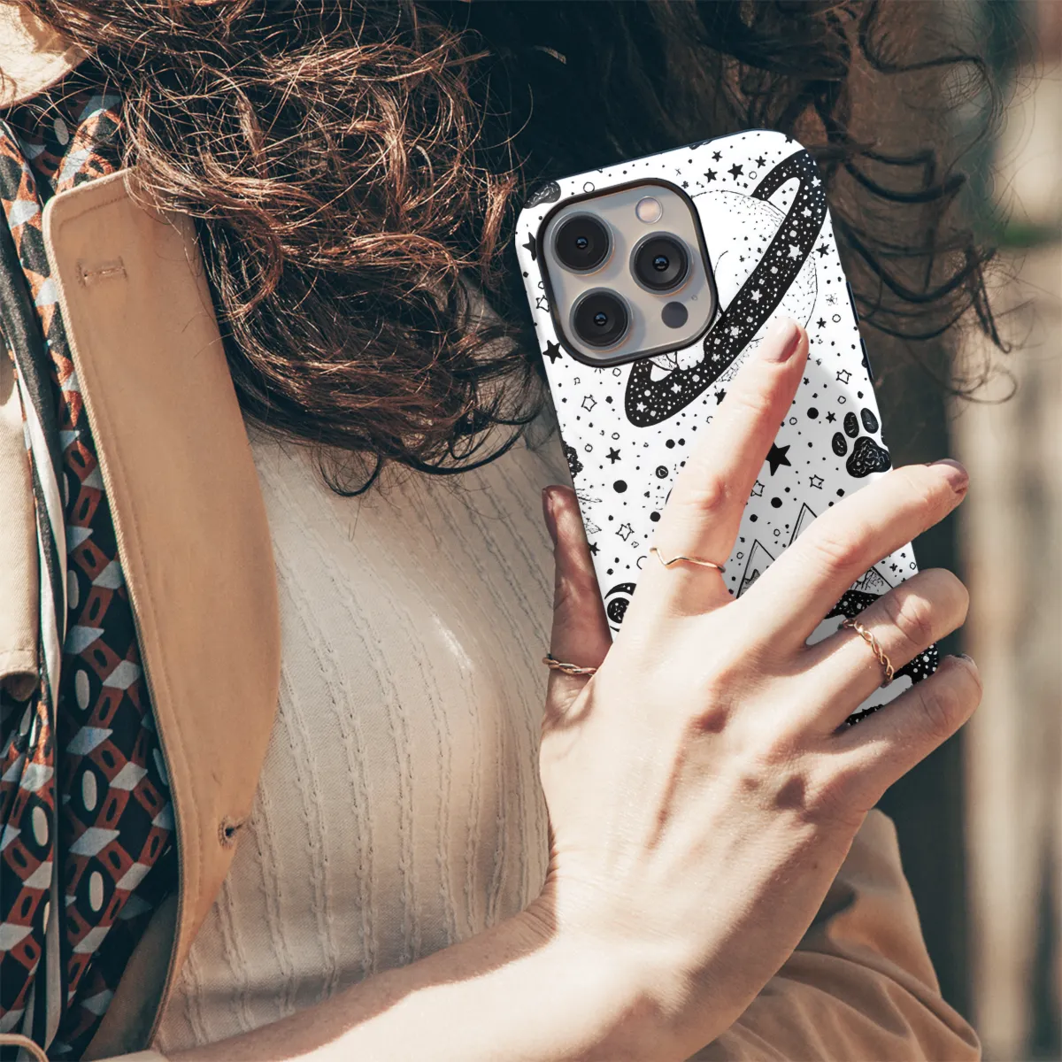 Prepare for Halloween with our spellbinding Esoteric Cat Phone Case. This mystical accessory adorns your phone with a whimsical feline companion, its eyes glowing under a moonlit sky. The ethereal design casts an enchanting aura, protecting your device in style. Embrace the enigmatic spirit of Halloween with this bewitching phone case, available for iPhone, Samsung, and Pixel models.