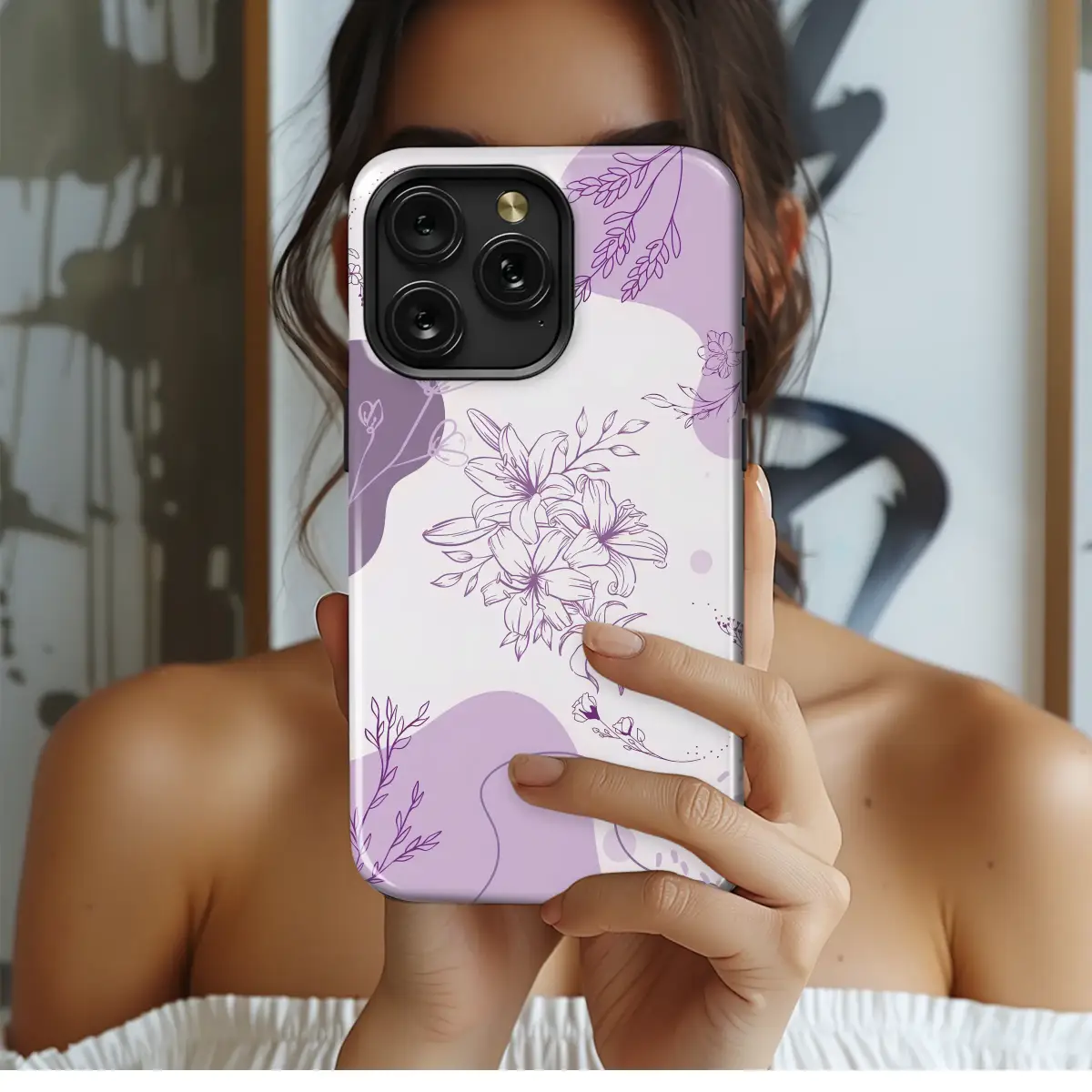 Immerse yourself in the ethereal whisper of a secret lilac garden, a design that captures the delicate balance between nature and abstract art. At its heart, a stunning bouquet of hand-drawn lilies unfolds in intricate, minimalist line art, their elegant petals a testament to timeless beauty. This central floral masterpiece floats gracefully against a dreamy backdrop of soft lavender, pale blush, and deep amethyst shapes, creating a contemporary and romantic aesthetic. Whimsical sprigs of wildflowers and gently drifting leaves seem to dance around the main arrangement, their fine lines adding a sense of serene movement and discovery. This cottagecore-inspired botanical illustration is a celebration of quiet moments and natural elegance. The monochromatic purple palette is both calming and sophisticated, perfect for anyone who appreciates a touch of feminine grace and artistic flair in their daily life. It’s more than just a pattern; it’s a wearable piece of art that transforms your most essential accessory into a statement of personal style. Carry this tranquil dreamscape with you as a daily reminder of gentle beauty and quiet strength. This unique floral line art makes a thoughtful gift for the nature lover, the dreamer, or anyone looking to infuse their world with a dose of peaceful, botanical charm.