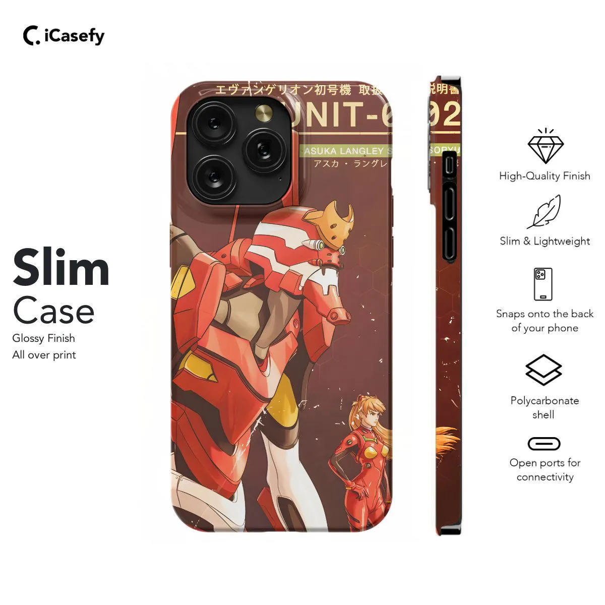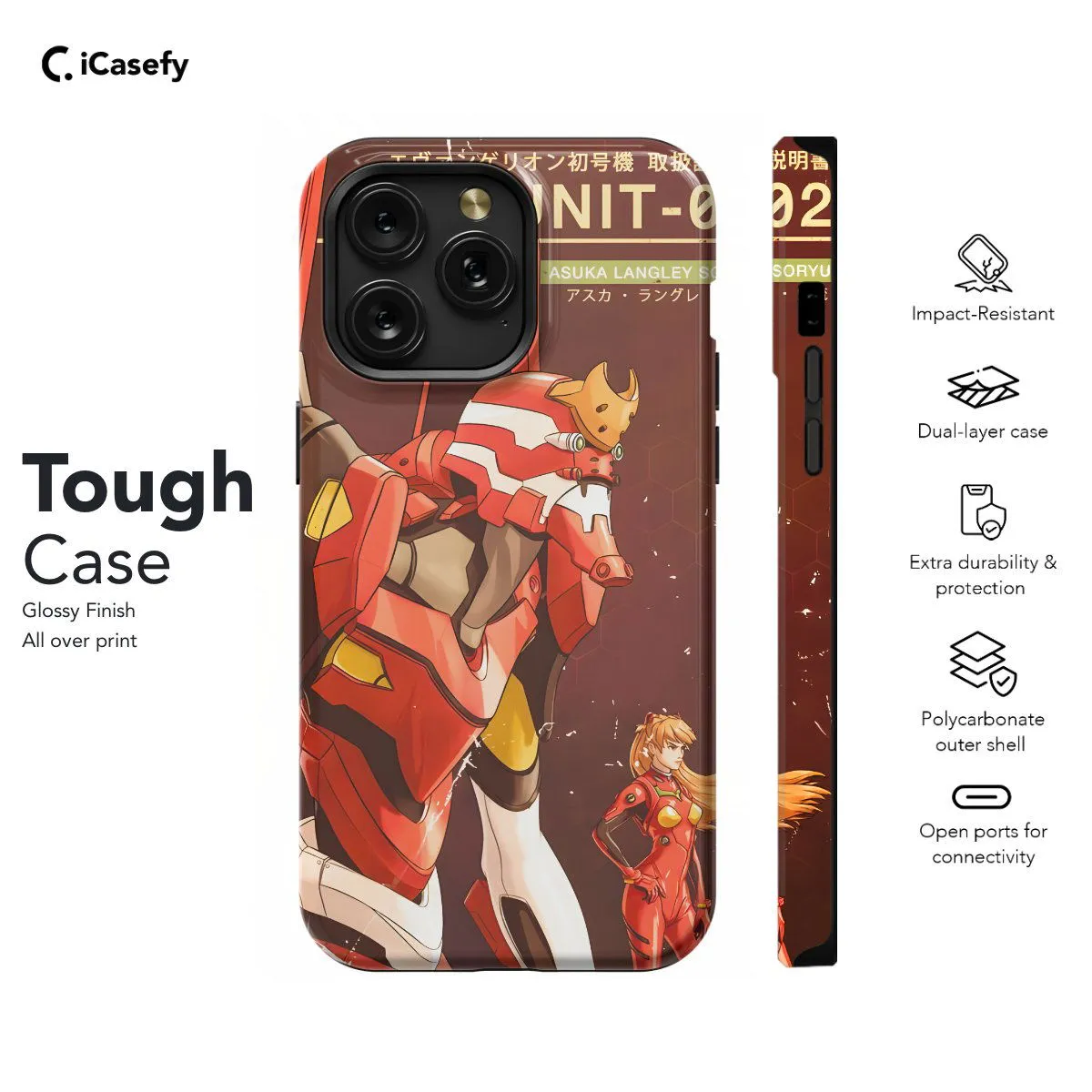 Embark on a journey into the enigmatic world of Evangelion with this captivating Eva 02-themed phone case. Inspired by the iconic mecha from the beloved anime series, this case pays homage to the powerful and mysterious Eva units. Elevate your device with the cutting-edge technology and dynamic energy of Evangelion and showcase your love for this legendary anime wherever you go.