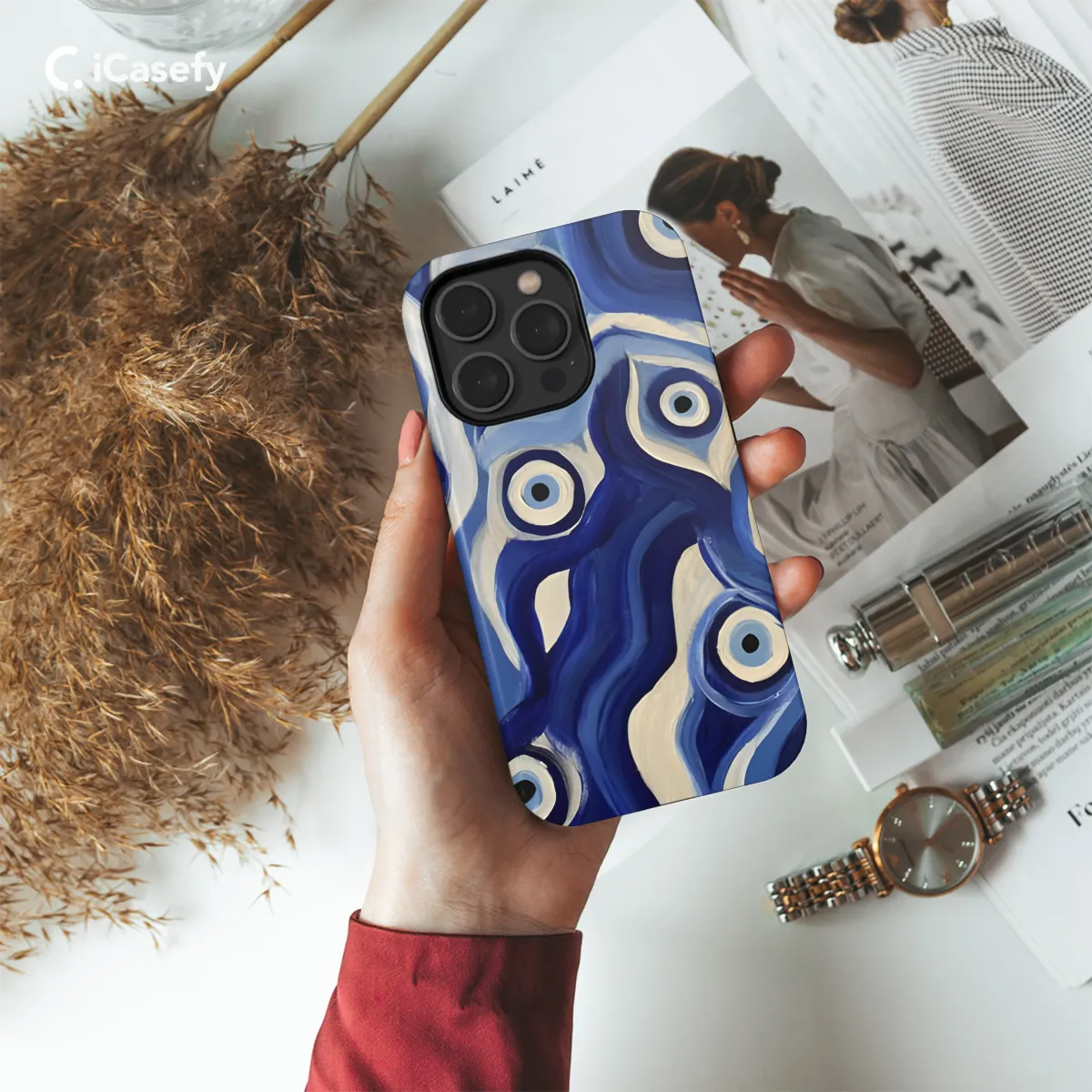 Embrace the enigmatic allure of our Evil Eye Wavy Phone Case, designed to safeguard your precious device with a mystical touch. This captivating accessory features an intricate evil eye drawing, a symbol of protection and divine favor, encased within captivating wavy lines. Its sleek and sturdy construction provides reliable protection against scratches, bumps, and accidental falls. Whether you're a believer in ancient symbols or simply appreciate their captivating aesthetics, this phone case is the perfect blend of fashion and functionality.