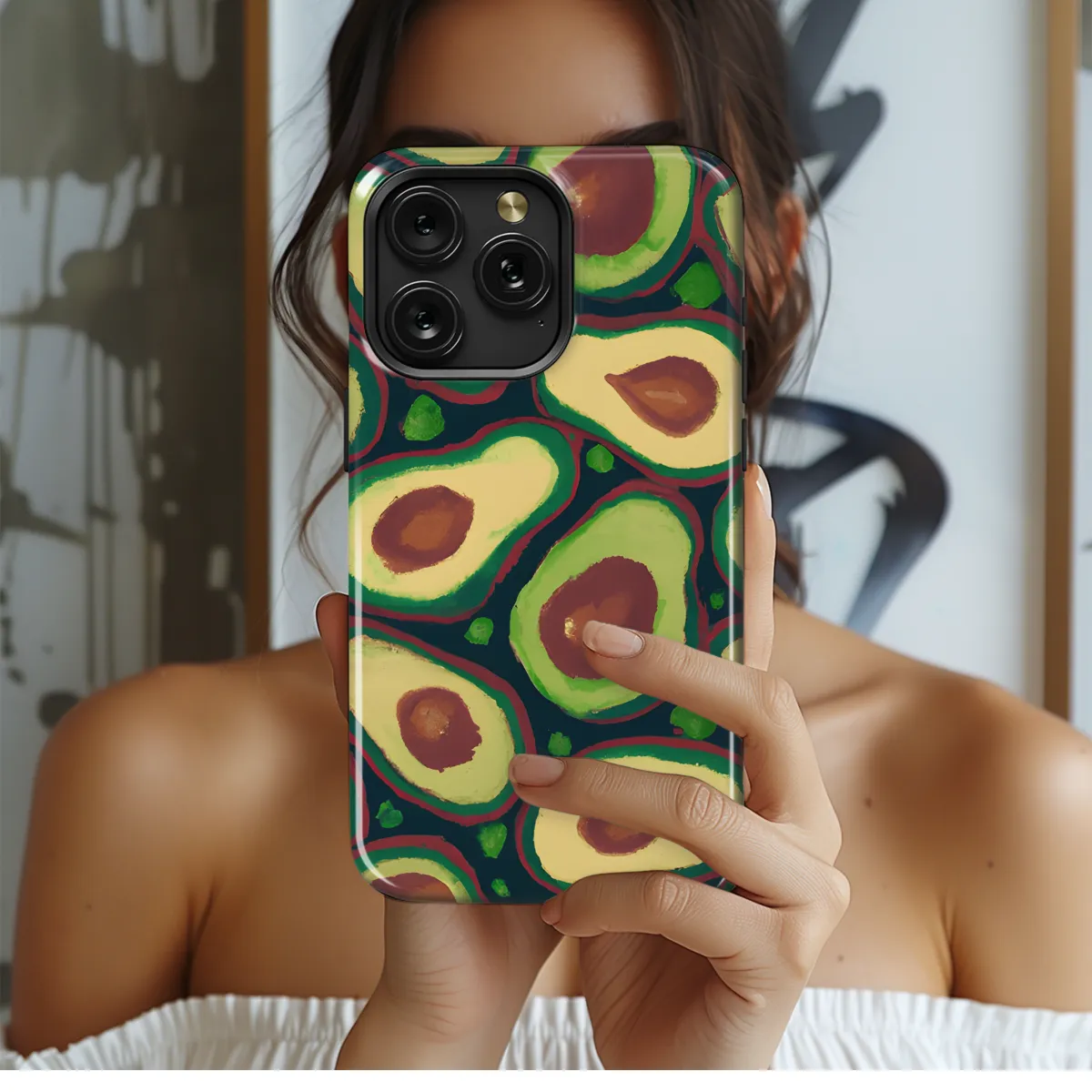 Unleash your inner artist with this vibrant and expressive avocado phone case. Featuring a playful abstract design, this case will turn your phone into a canvas of creativity. Its durable construction and shock-absorbent properties ensure maximum protection for your device, while its slim profile maintains the sleekness of your phone. Whether you're a lover of all things avocado or simply appreciate bold artistic expression, this phone case is the perfect choice to add a touch of fun and flair to your everyday tech companion.