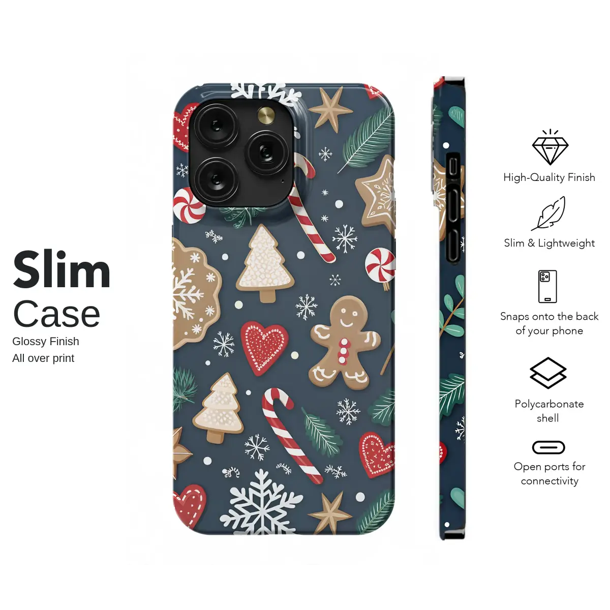 Wrap your phone in the cozy spirit of the holidays with this festive gingerbread cookie case. This charming design features a delightful pattern of Christmas cookies, candy canes, and winter greenery on a deep navy background, perfect for adding a touch of seasonal cheer. Inspired by the sweet nostalgia of holiday baking, this case brings the warmth and joy of gingerbread treats right to your fingertips. It’s a wonderful way to celebrate the season or a thoughtful gift for the baker in your life. Key Features: • Materials: Made from durable, flexible, and shock-absorbent TPU silicone. • Protection: Slim-form design provides protection without adding bulk, with raised edges to protect the screen and camera. • Finish: A vibrant, UV-printed design with a smooth, matte finish that resists scratches and fading. • Compatibility: Available for most iPhone, Samsung Galaxy, and Google Pixel models. • Care: Simply wipe clean with a damp cloth to keep it looking fresh.