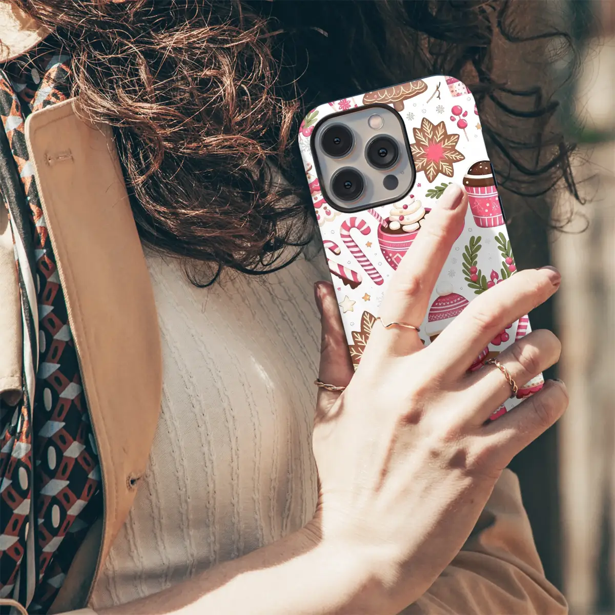 Embrace the festive season with this delightful Christmas pattern. The design is a sweet celebration of holiday treats, featuring charming gingerbread men, decorated cookies, candy canes, and cozy mugs of hot cocoa. Illustrated in a whimsical style with a unique pink, white, and brown color palette, this pattern adds a touch of cheerful, cozy magic.