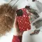 Embrace the cozy season with this charming holiday-themed illustration. Set against a rich red background, this festive pattern features steaming mugs of hot cocoa, delicate snowflakes, golden leaves, and sweet holiday treats like star cookies and citrus slices. The whimsical design captures the warm and joyful spirit of winter.