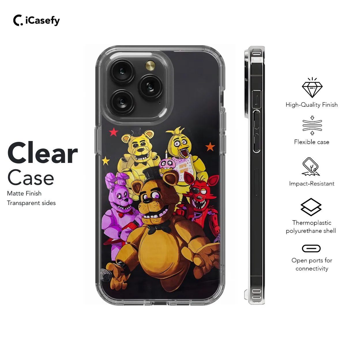 Immerse yourself in the suspenseful world of Five Nights at Freddy's with this chilling phone case featuring iconic characters and elements from the game. From Freddy Fazbear to Bonnie the Bunny, this case captures the eerie atmosphere and thrill of the FNAF universe. Carry a touch of animatronic horror with you wherever you go, letting your device become a tribute to the spine-tingling excitement of Five Nights at Freddy's with this haunting accessory.