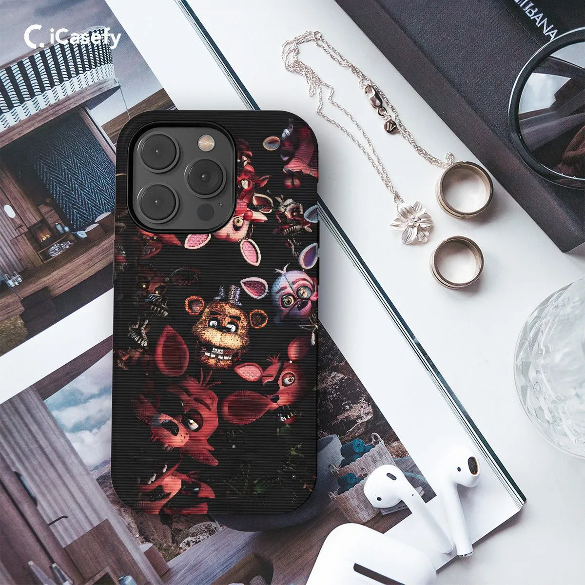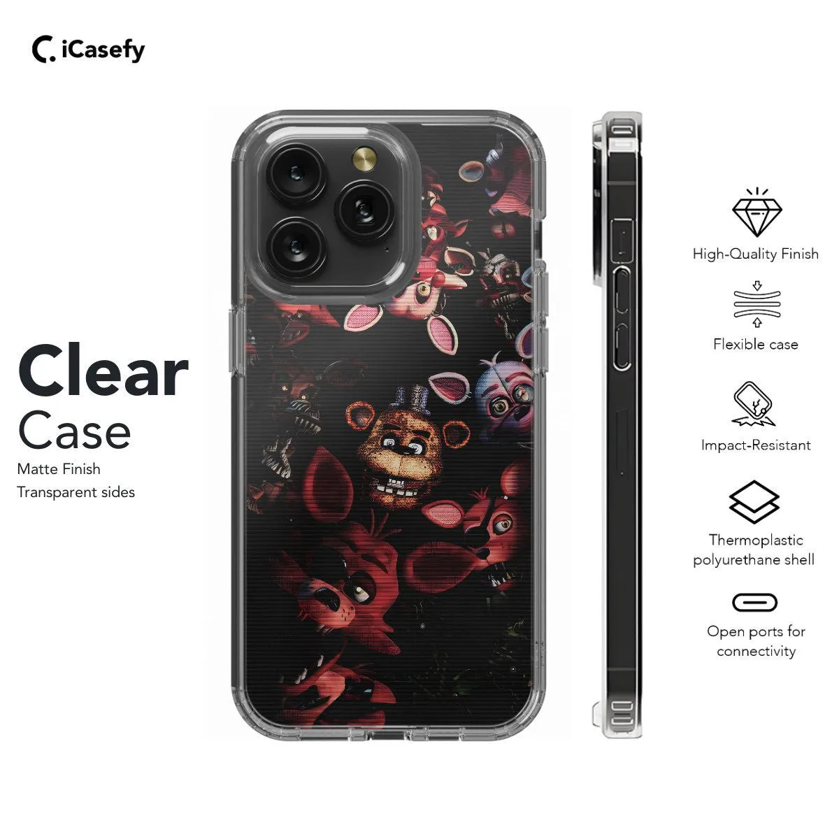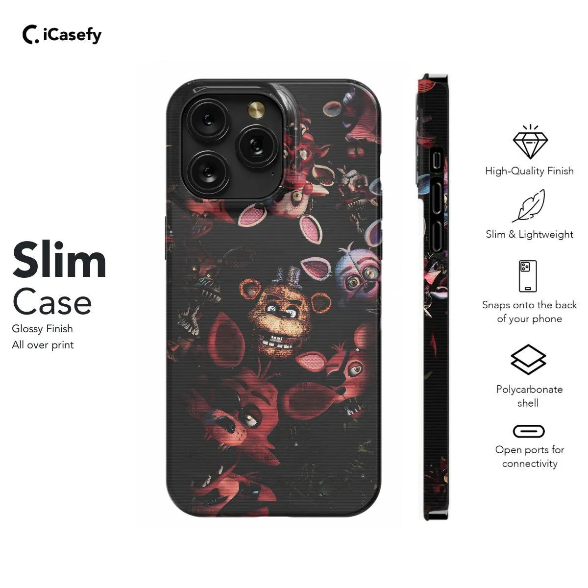 Introducing our Five Nights at Freddy's (FNAF) phone case, inspired by the thrilling horror game franchise. Featuring iconic characters like Freddy Fazbear and friends, this case adds a touch of suspense and excitement to your device. Protect your phone while showcasing your love for FNAF in style.