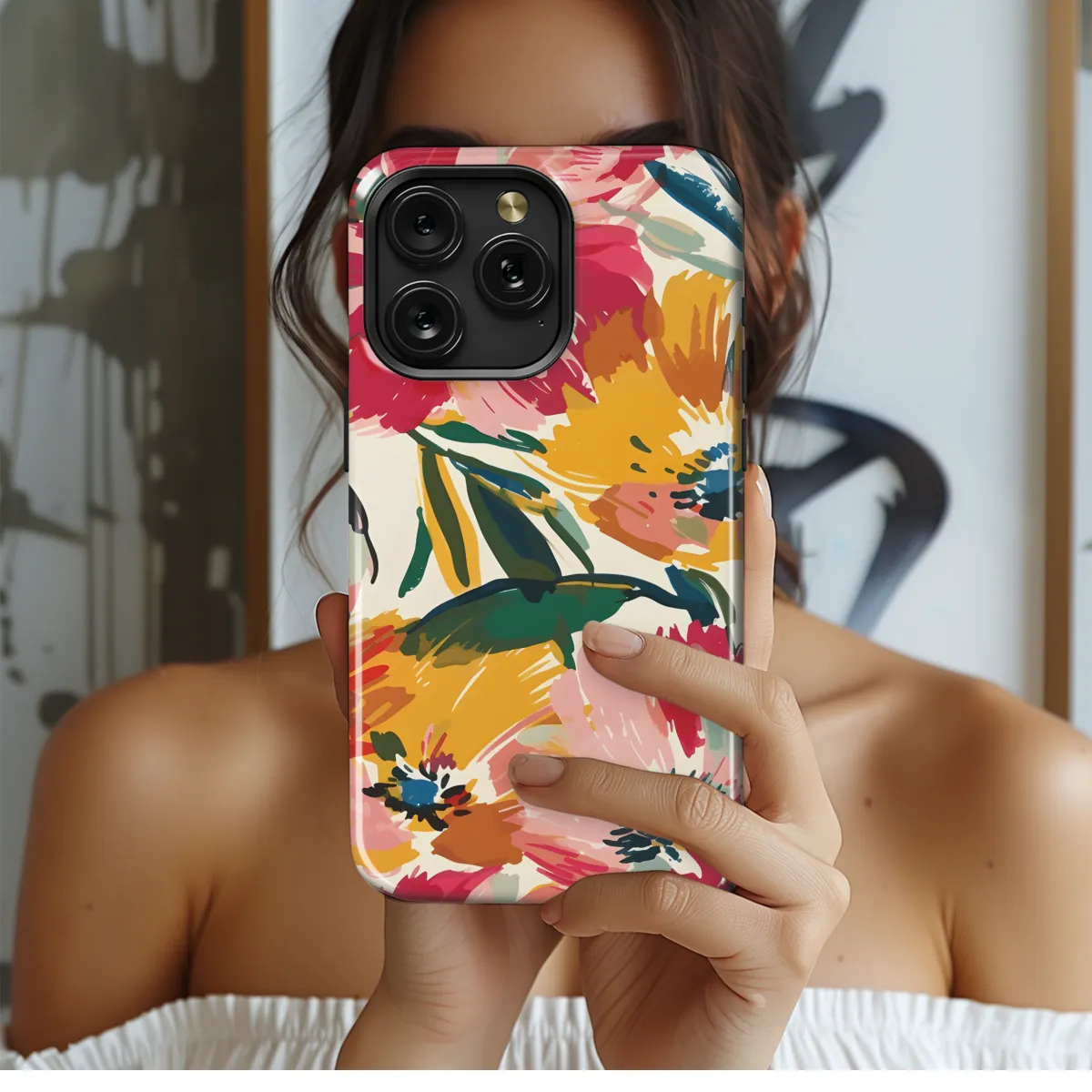 Immerse yourself in a realm of captivating abstract floral grunge with this exquisite phone case. Its seamless pattern dances across a vibrant canvas, blending vibrant hues and intricate textures. Each petal, leaf, and brushstroke coalesces to create a mesmerizing masterpiece that will turn your device into a stylish accessory. Whether you're capturing special moments or staying connected, this case will elevate your everyday style with its unique and enigmatic aura.