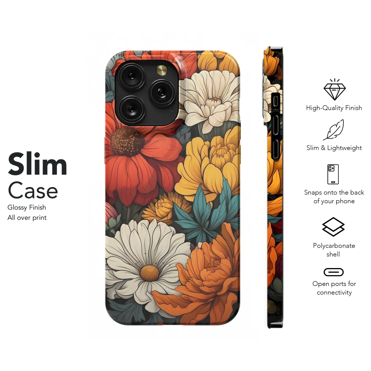 Embrace vibrant botanical beauty with this captivating floral design. Rich oranges, fiery reds, and creamy whites create a stunning arrangement of meticulously detailed blossoms. This artwork showcases a lush, vintage-inspired aesthetic, perfect for adding a touch of elegance and sophistication to your everyday style. The intricate linework and bold color palette create a visually striking piece that's sure to be a conversation starter. Its timeless appeal makes it a versatile accessory, suitable for both casual and formal occasions. This high-quality print is produced using vibrant, long-lasting inks, ensuring your design remains bold and beautiful for years to come. Elevate your look with a statement piece that reflects your unique personality and appreciation for artistic detail. This design is a delightful blend of classic floral motifs and modern artistic sensibilities, making it a truly exceptional addition to your personal collection. Add a touch of nature-inspired artistry to your life with this exquisite floral masterpiece, a perfect gift for yourself or a loved one who appreciates exquisite design and beautiful blooms. The detailed rendering ensures the print's vibrancy will stand out, adding an elegant and modern touch to any setting.