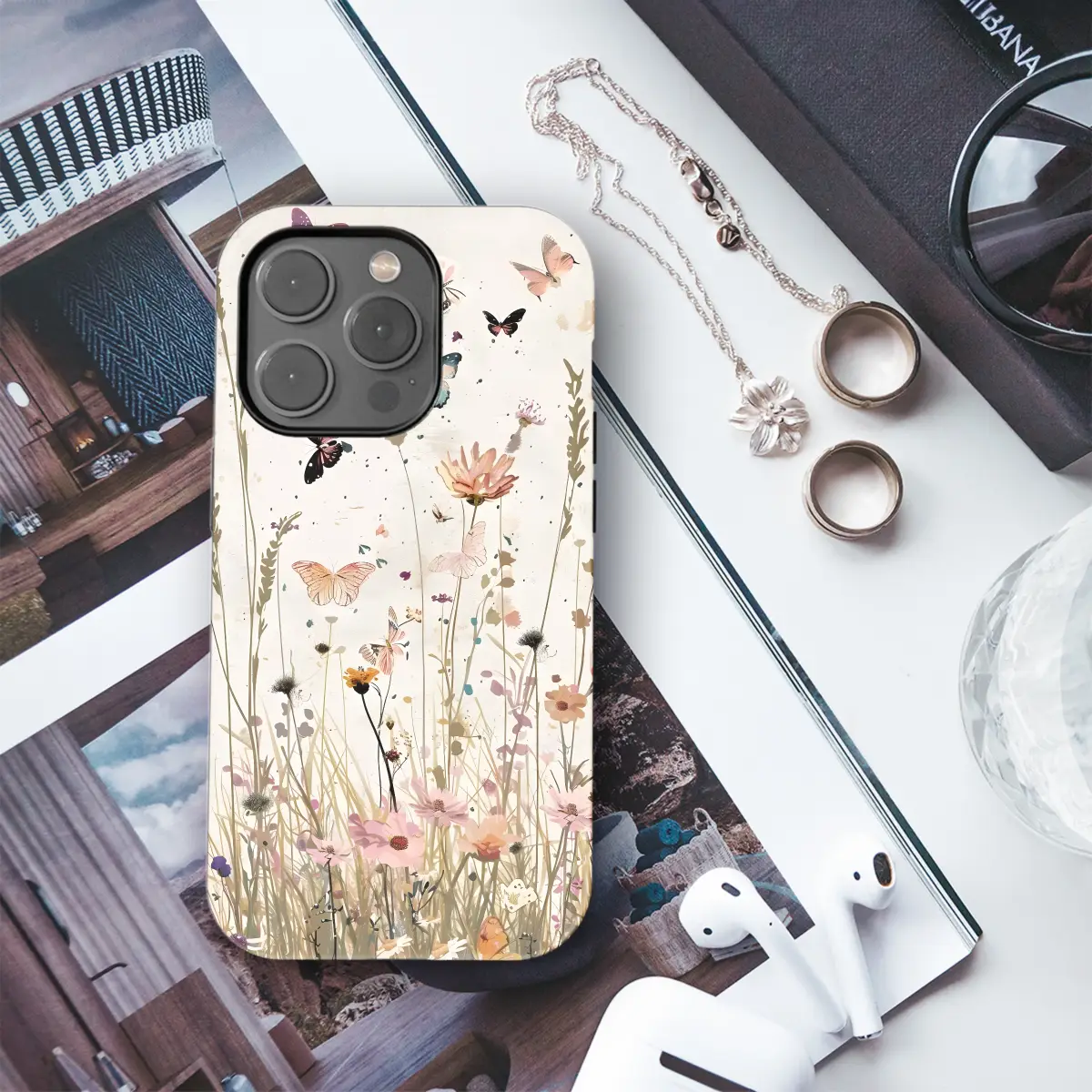 Enliven your phone with a touch of nature! Our Floral Butterfly Meadow phone case transports you to a vibrant meadow, where fluttering butterflies dance among delicate blossoms. Protect your device in style with this enchanting and eye-catching accessory, available for iPhone, Samsung, and Pixel models.