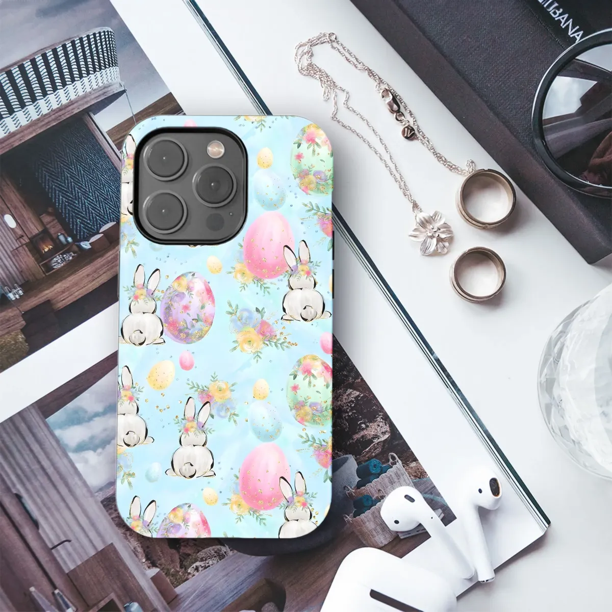 Spring into style with this floral Easter bunny phone case! Adorable design available for iPhone, Samsung, and Pixel models. Protect your phone with a touch of seasonal cheer!