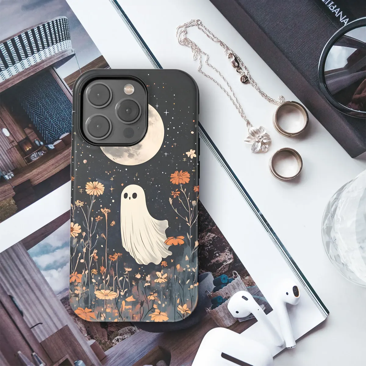 Ethereal floral ghost dances under a moonlit night. Protect your iPhone, Samsung, or Pixel with this unique and captivating phone case.