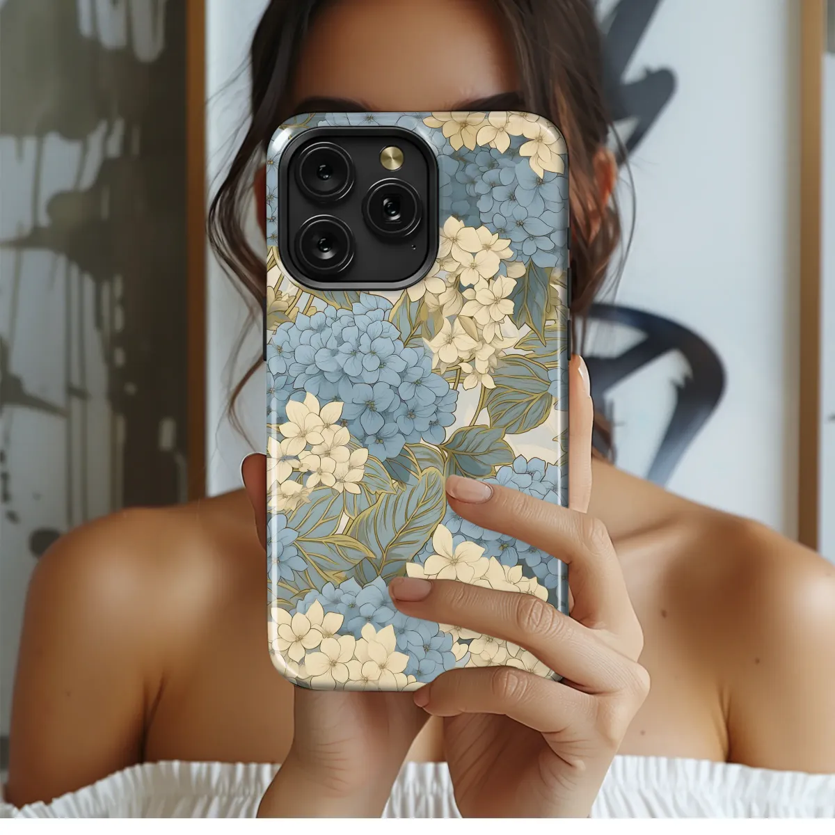 Adorn your device with this exquisite floral design, featuring a breathtaking arrangement of delicate hydrangeas in calming blue and creamy beige hues. The intricate details of each blossom and leaf are beautifully rendered, creating a sophisticated and elegant aesthetic. This lush botanical print offers a touch of refined artistry, transforming your everyday accessory into a statement piece. The vibrant colors and timeless design make it a perfect gift for yourself or a loved one who appreciates beauty and quality. This high-resolution image ensures crisp, clear printing on a variety of materials, guaranteeing a long-lasting and visually stunning result. Enhance your style with this captivating floral masterpiece, a blend of classic elegance and modern appeal. The muted color palette adds a sense of calm and sophistication, perfect for those who appreciate understated beauty. Order yours today and elevate your personal style with this unique and unforgettable design. Search terms: floral, hydrangea, flowers, botanical, elegant, sophisticated, blue, beige, cream, delicate, pretty, artistic, nature, plant, design, print, pattern, gift, accessory.