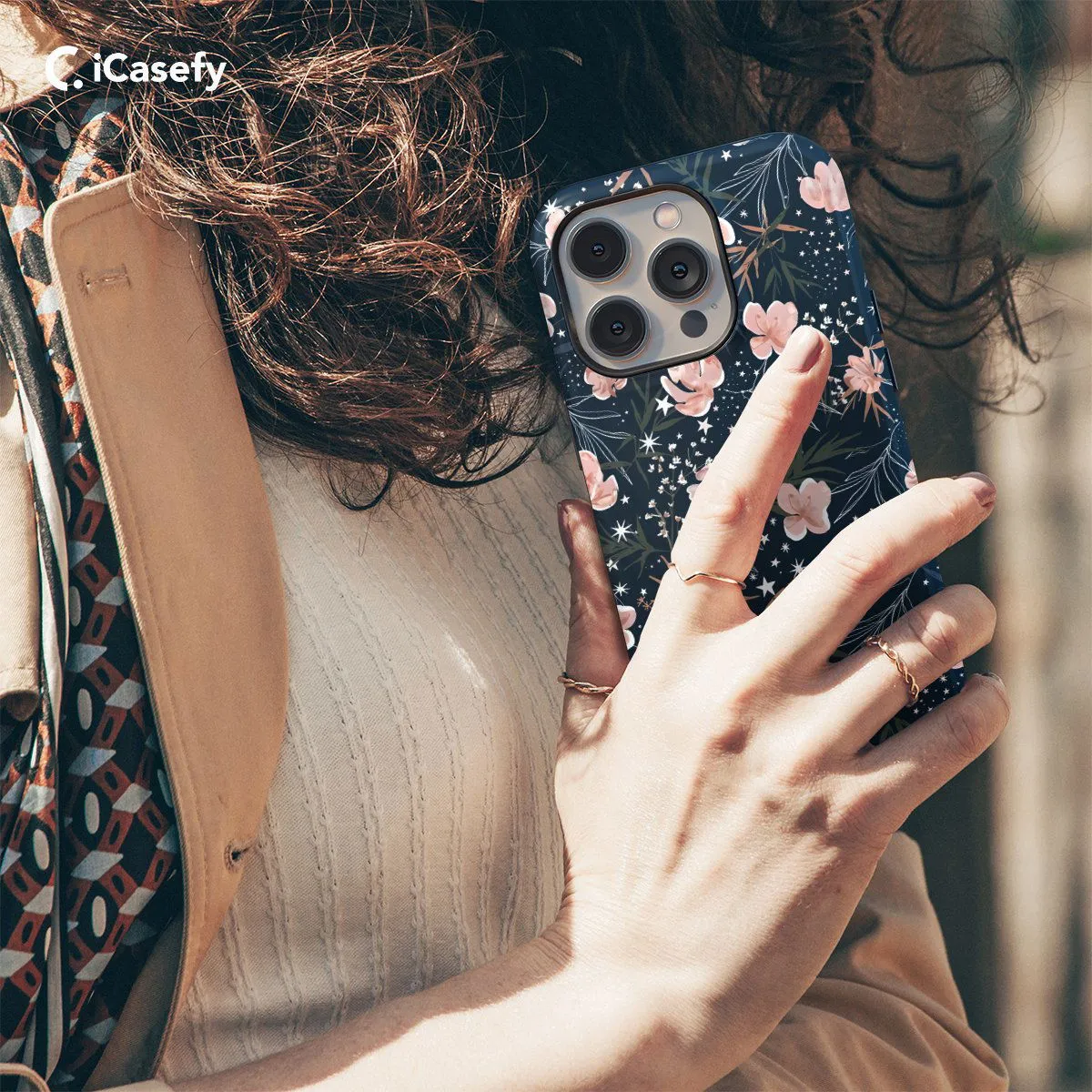 Embrace the enchanting beauty of the night sky with this captivating phone case featuring celestial stars scattered amidst delicate flowers. Inspired by the mystical allure of the cosmos and the serene elegance of nature, this case evokes a sense of wonder and tranquility. Carry the magic of the celestial realm with you wherever you go and let your device shine with celestial splendor under the starry night sky.