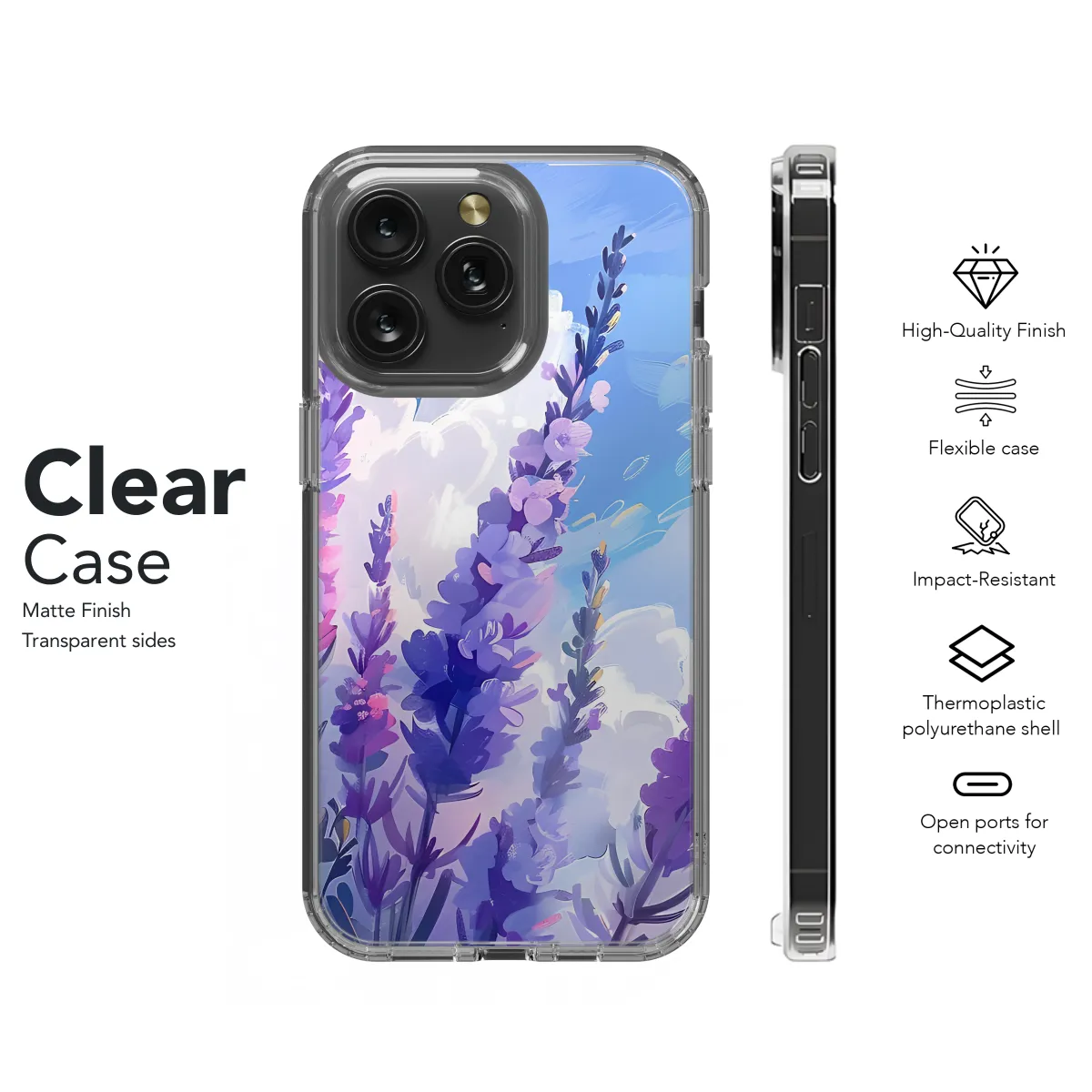 Protect your phone with this sleek and stylish lavender flower phone case. Made from durable materials, this case will keep your phone safe from scratches, bumps, and drops. The beautiful lavender flower design adds a touch of elegance to your phone, and the slim profile ensures that it won't add bulk to your device.