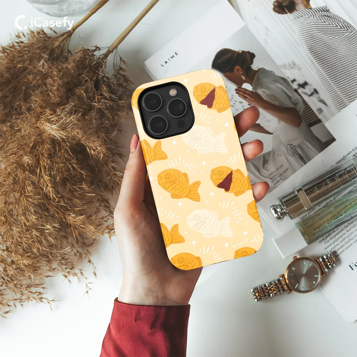 Indulge your cravings with our delectable Food Taiyaki Phone Case! This case is a sweet treat for your phone, featuring the adorable shape of a classic Japanese taiyaki fish waffle filled with scrumptious red bean paste. Made from durable material, it protects your phone while bringing a touch of sugary style to your daily routine. Available for a wide range of iPhone, Samsung, and Pixel models, satisfy your phone's sweet tooth today!