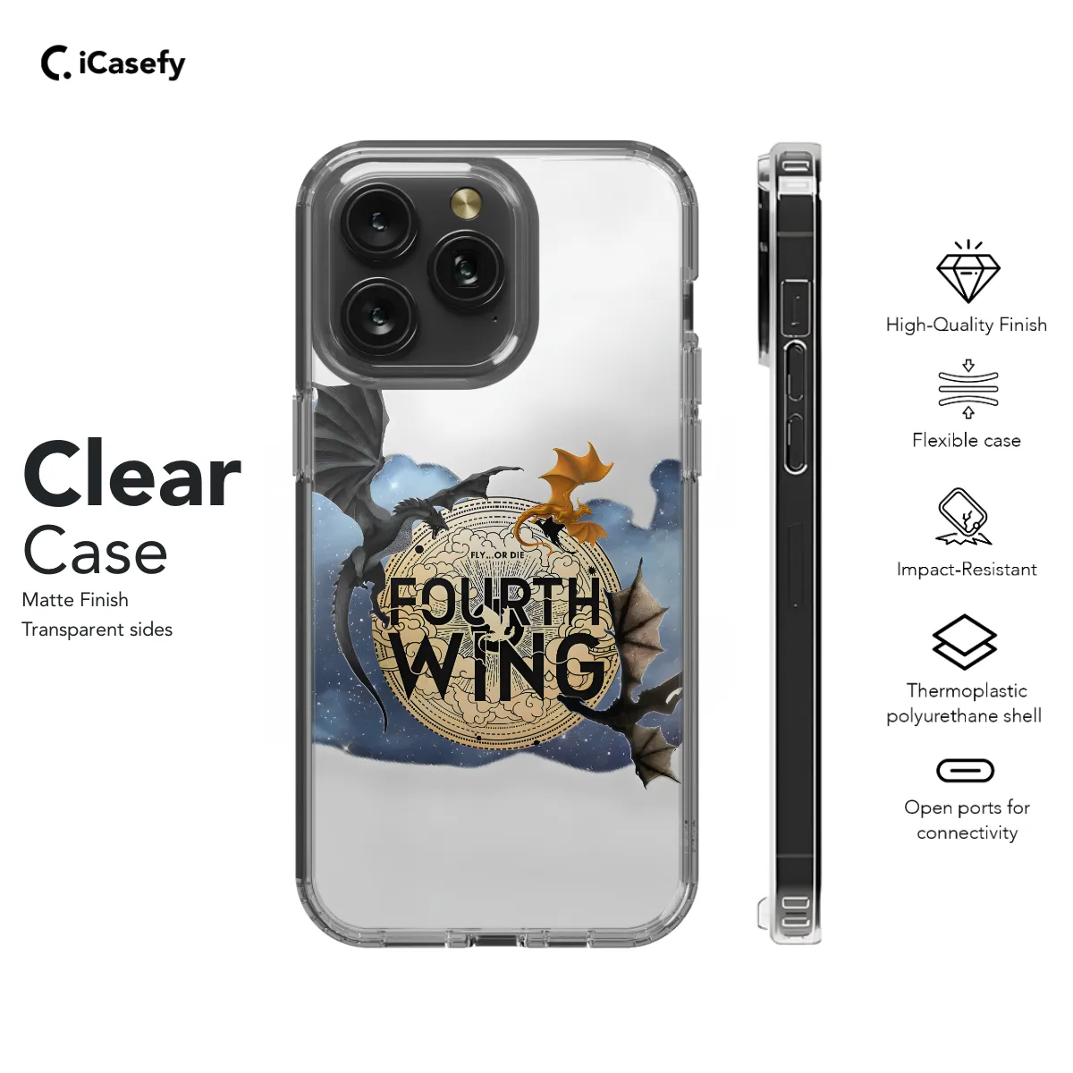 Immerse yourself in the captivating world of ACOTAR with our exquisite phone case. Featuring an enchanting design adorned with the wings of the fourth wing, this case will transport you to the realm of Prythian. Specifically crafted for iPhone and Samsung models, this case ensures a snug fit. Its durable construction safeguards your device from scratches and bumps, while its vibrant colors and intricate details bring the beauty of ACOTAR to life. Whether you're a fervent book lover or simply appreciate ethereal aesthetics, this Fourth Wing ACOTAR phone case is an essential accessory for expressing your adoration for the series.