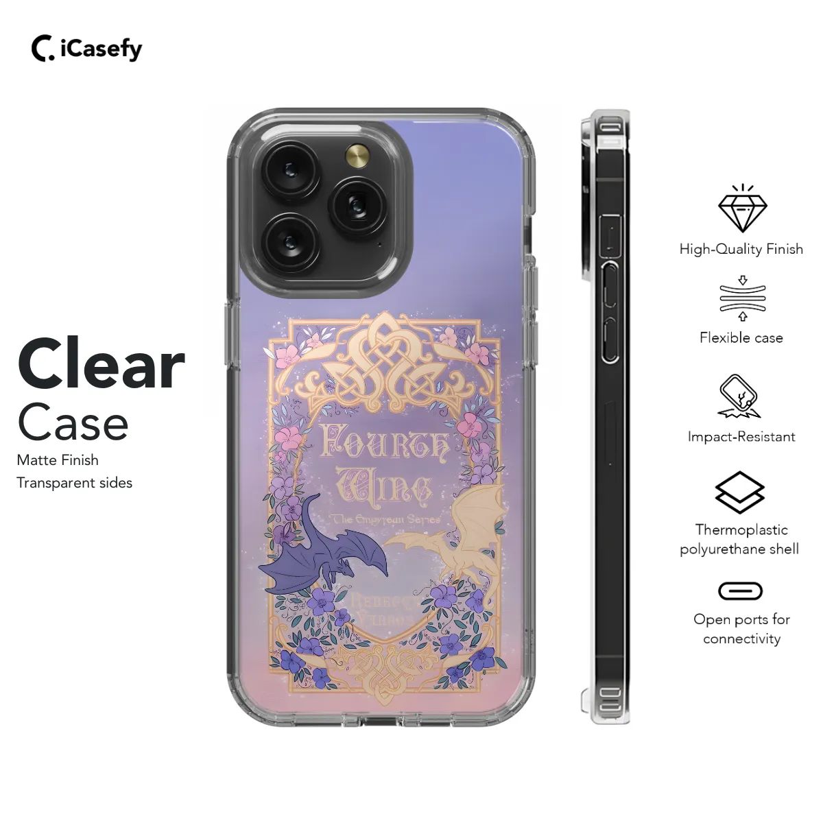 Slip into the magical realm of Prythian with this enchanting "Fourth Wing" phone case, inspired by the beloved A Court of Thorns and Roses series. This sleek and protective cover features an ethereal design that transports you to the Land of Faerie. Crafted from durable materials, this phone case will shield your device from the perils of the mortal world while immersing you in the beauty of the Fae realm. From the delicate wings of the Fourth Wing to the intricate patterns of the Fae Court, every detail is a tribute to the enchanting world created by Sarah J. Maas. Whether you're navigating the shadows of the Night Court or soaring through the skies with Feyre, this phone case will be a constant reminder of your connection to the magical world. Embrace the wonder of Prythian and protect your phone in style with this captivating "Fourth Wing" creation.