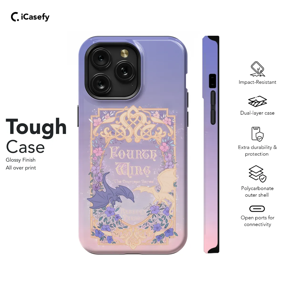 Slip into the magical realm of Prythian with this enchanting "Fourth Wing" phone case, inspired by the beloved A Court of Thorns and Roses series. This sleek and protective cover features an ethereal design that transports you to the Land of Faerie. Crafted from durable materials, this phone case will shield your device from the perils of the mortal world while immersing you in the beauty of the Fae realm. From the delicate wings of the Fourth Wing to the intricate patterns of the Fae Court, every detail is a tribute to the enchanting world created by Sarah J. Maas. Whether you're navigating the shadows of the Night Court or soaring through the skies with Feyre, this phone case will be a constant reminder of your connection to the magical world. Embrace the wonder of Prythian and protect your phone in style with this captivating "Fourth Wing" creation.