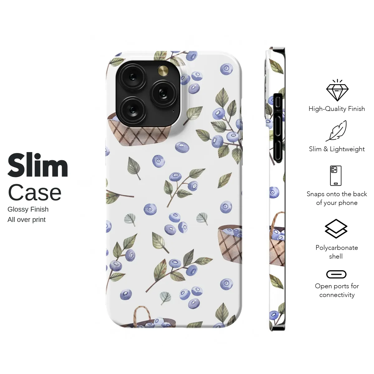Wander into a sun-dappled meadow every time you reach for your device with our enchanting blueberry harvest design. This isn't just a protective shell; it's a piece of wearable art that captures the simple, sweet joy of a perfect summer afternoon. Delicate watercolor blueberries, looking as if they were just picked, tumble across a crisp white background, some nestled on leafy sprigs and others gathered in charming, rustic woven baskets. This whimsical fruit pattern evokes a feeling of warm nostalgia, perfect for anyone who adores a cottagecore aesthetic and the charm of country living. Let this beautiful botanical illustration wrap your daily tech in a layer of farmhouse serenity and hand-painted beauty. It’s the ideal nature lover gift, a sweet treat for a best friend, or a delightful way to carry the peaceful vibe of a farmer's market with you on all your adventures. Embrace the rustic elegance and add a touch of whimsical storytelling to your everyday essentials with this unique berry-picking artwork, a truly special accessory for your iPhone or Samsung Galaxy that feels both timeless and fresh.