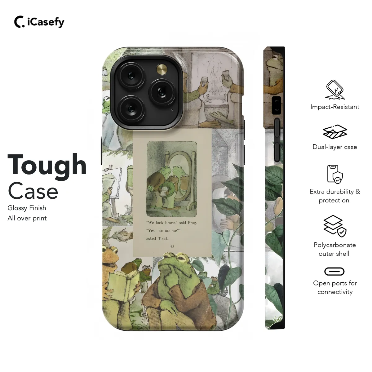 Protect your phone with style with our cute and whimsical Frog and Toad Phone Case. This durable case is compatible with iPhone, Samsung, and Pixel models and features a charming design of two adorable frogs perched on a toadstool. Its slim profile provides protection without adding bulk, and its precise cutouts ensure easy access to all buttons and ports. Keep your phone safe and show off your love for these beloved characters wherever you go.