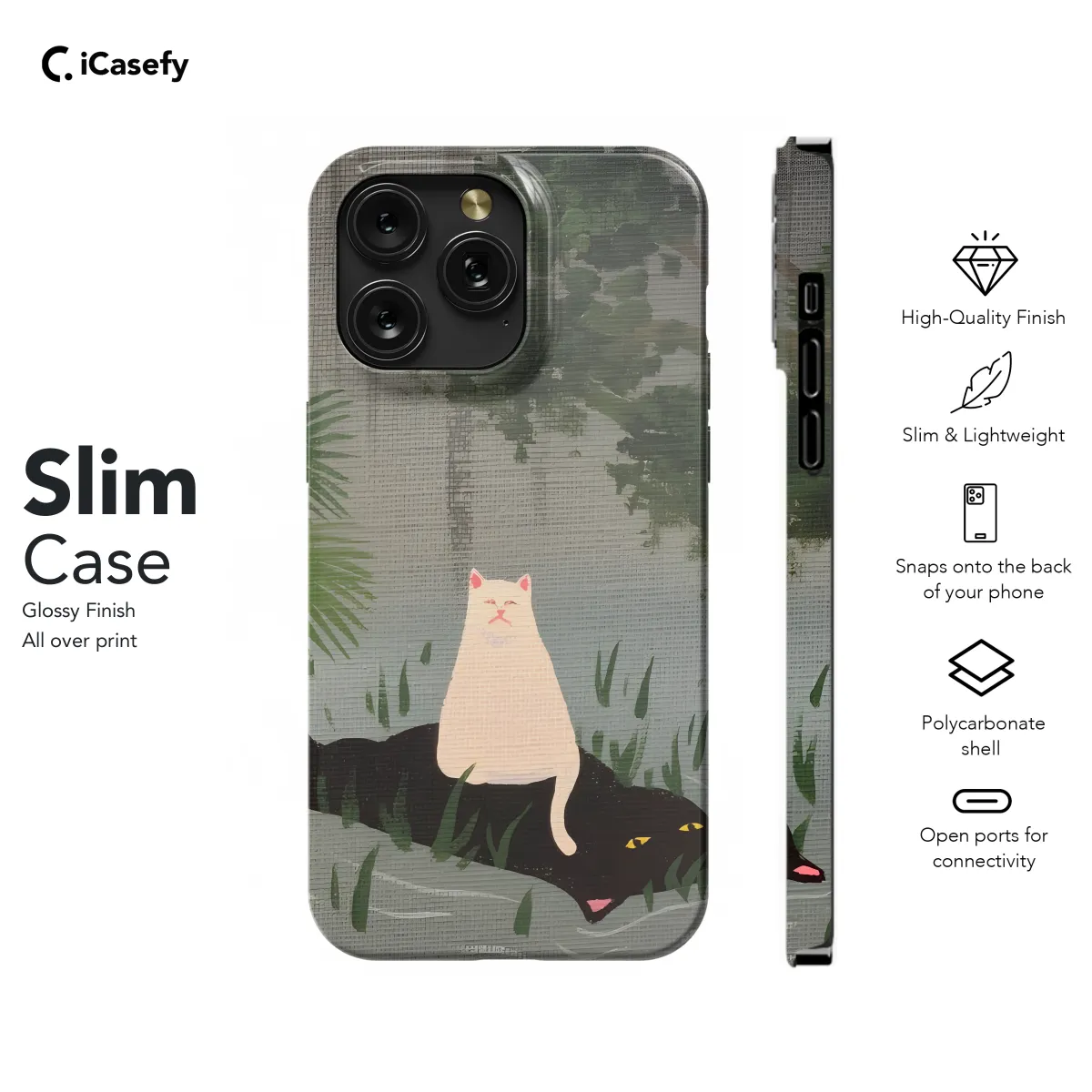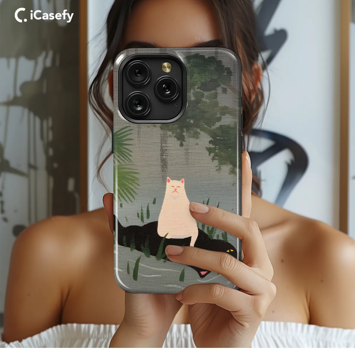 Introducing the hilarious cat floating phone case! This one-of-a-kind case features a classic photograph of a cat chilling in a river, giving you and your friends a good laugh every time you use your phone. The case fits perfectly on your iPhone, Samsung, or Pixel phone, and its durable construction will protect your phone from bumps and scratches. Perfect for cat lovers of all ages, this phone case is sure to bring a smile to your face.
