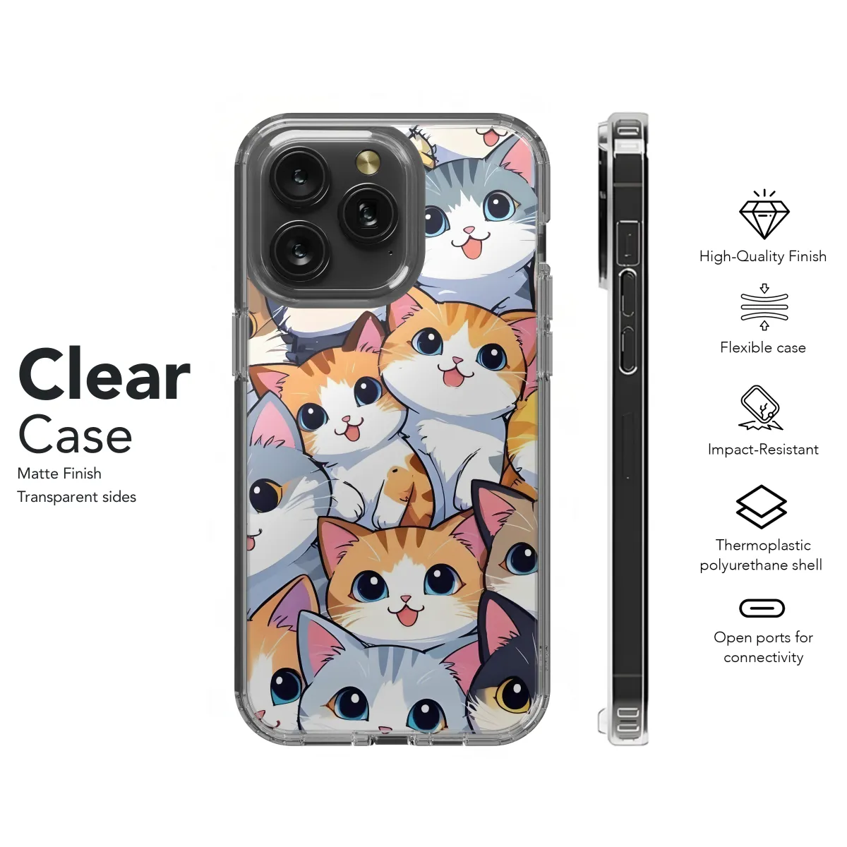 Add a touch of feline fun to your phone with this adorable and seamless cat pattern case. It's perfect for all cat lovers who want to show off their love for their furry friends. The case is made of durable TPU material that will protect your phone from scratches and drops, while the vibrant print will keep your phone looking stylish. Whether you're a cat lady or a crazy cat man, this case is the purr-fect way to show off your feline pride. Compatible with iPhone, Samsung, and Pixel phones, it's the perfect gift for any cat lover.