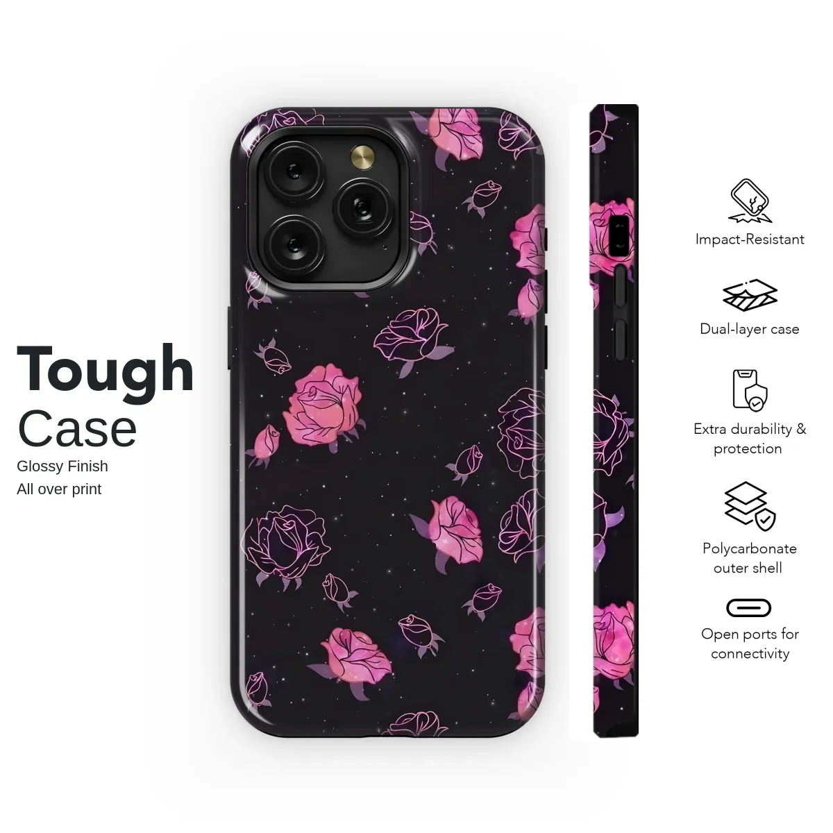 Adorn your device with this celestial rose design. Featuring a captivating blend of dark cosmic background and vibrant pink roses, this print offers a unique and enchanting aesthetic. The intricate details of each rose, combined with the glittering starlight effect, create a mesmerizing visual experience. This stylish accessory is perfect for anyone who appreciates dreamy designs and wants to express their individuality. The high-quality print ensures the vibrant colors and intricate details remain vivid and clear, even with daily use. This stunning design adds a touch of elegance and mystery, transforming your device into a personalized work of art. A perfect gift for yourself or someone special who appreciates beautiful, unique, and high-quality products. This item is printed to order, ensuring freshness and minimizing waste, and your satisfaction is guaranteed. Order yours today and let your device reflect your stellar style.