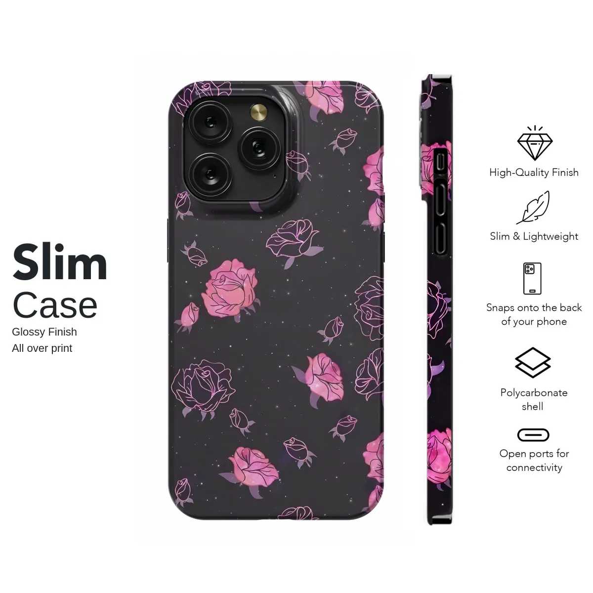 Adorn your device with this celestial rose design. Featuring a captivating blend of dark cosmic background and vibrant pink roses, this print offers a unique and enchanting aesthetic. The intricate details of each rose, combined with the glittering starlight effect, create a mesmerizing visual experience. This stylish accessory is perfect for anyone who appreciates dreamy designs and wants to express their individuality. The high-quality print ensures the vibrant colors and intricate details remain vivid and clear, even with daily use. This stunning design adds a touch of elegance and mystery, transforming your device into a personalized work of art. A perfect gift for yourself or someone special who appreciates beautiful, unique, and high-quality products. This item is printed to order, ensuring freshness and minimizing waste, and your satisfaction is guaranteed. Order yours today and let your device reflect your stellar style.