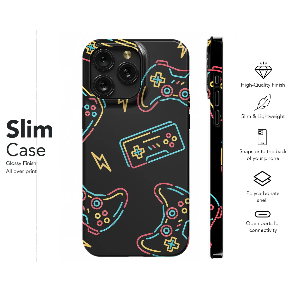 Protect your phone in style with our Gamer Seamless Pattern Phone Case. This case features a vibrant, all-over gamer-inspired print that will turn heads. The durable construction ensures maximum protection from scratches, bumps, and drops. Available in a variety of sizes to fit most iPhone, Samsung, and Pixel models.