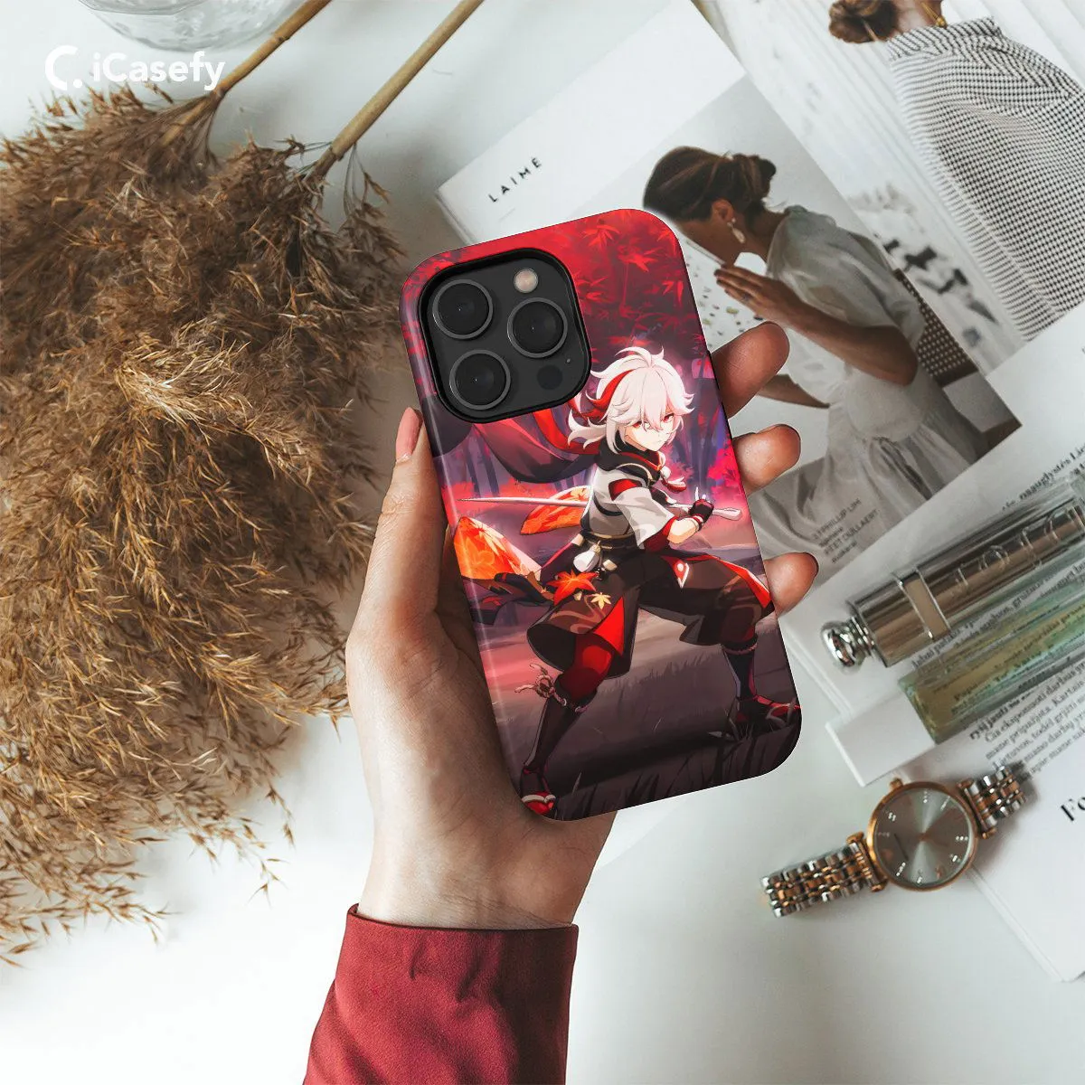 Introducing our Genshin Impact Kazuha phone case, inspired by the enigmatic character from the popular game. Featuring captivating artwork of Kazuha, this case allows you to showcase your love for the game and its characters while protecting your device in style.